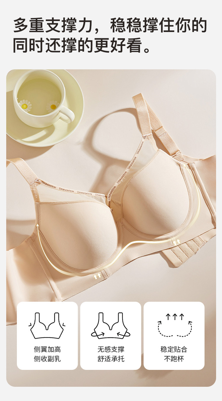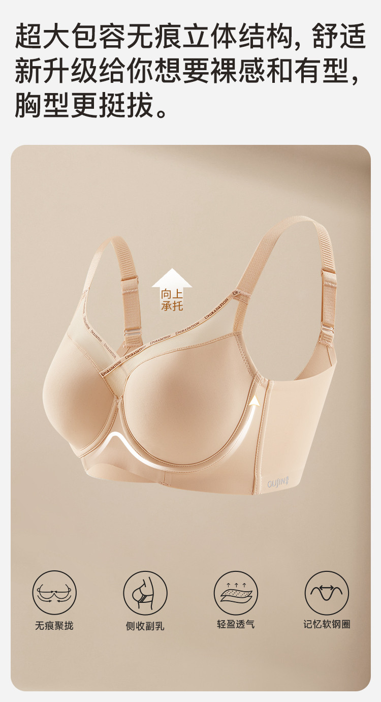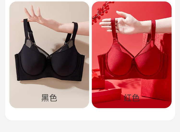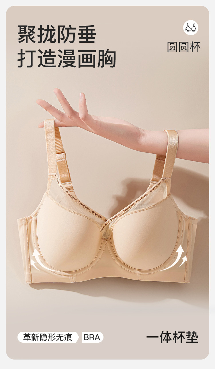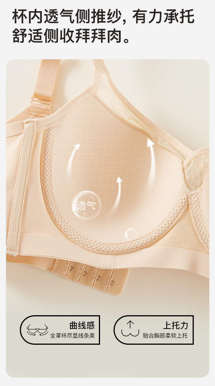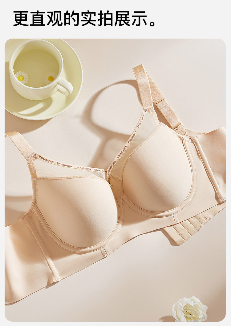 商品名称:【强聚拢】光面无痕侧收副乳防下垂内衣拼接网纱聚拢上托文胸罩女 349195