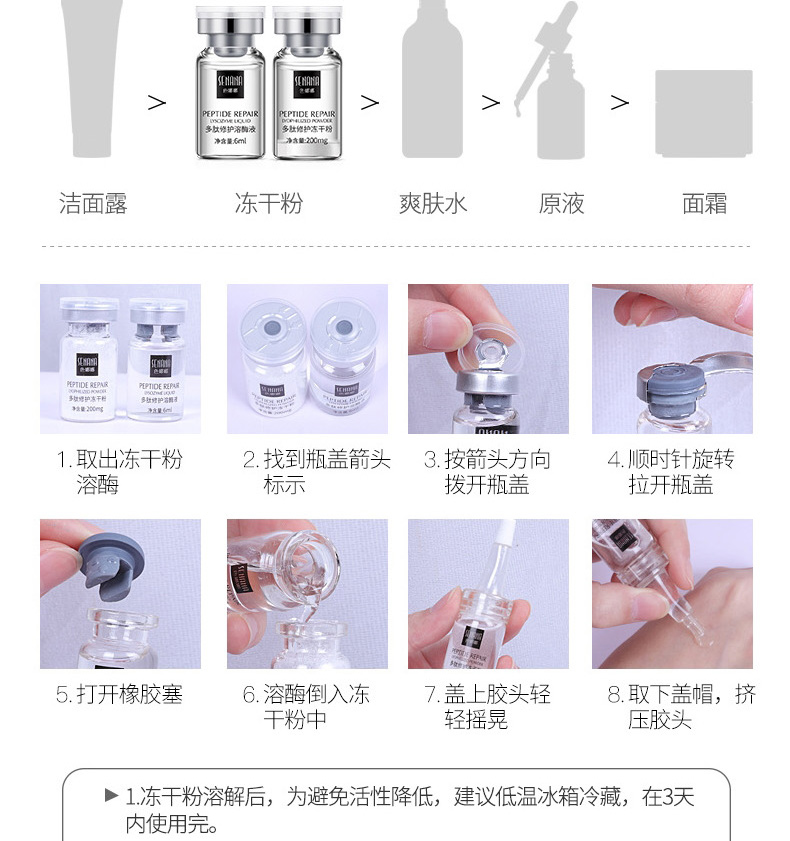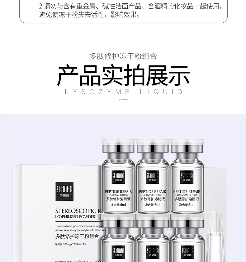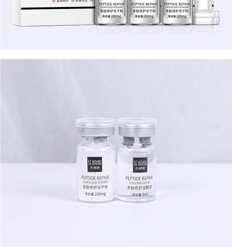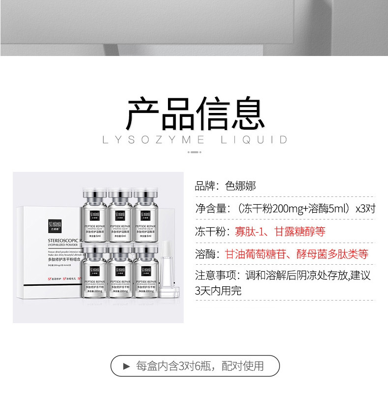 商品名称:色娜娜多肽修护冻干粉组合(溶酶液6ml*3+冻干粉200mg*3)