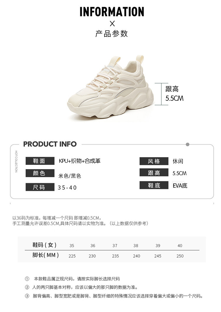 商品名称:【轻便透气】春夏老爹鞋增高厚底鞋轻便舒适休闲鞋运动女鞋 263959