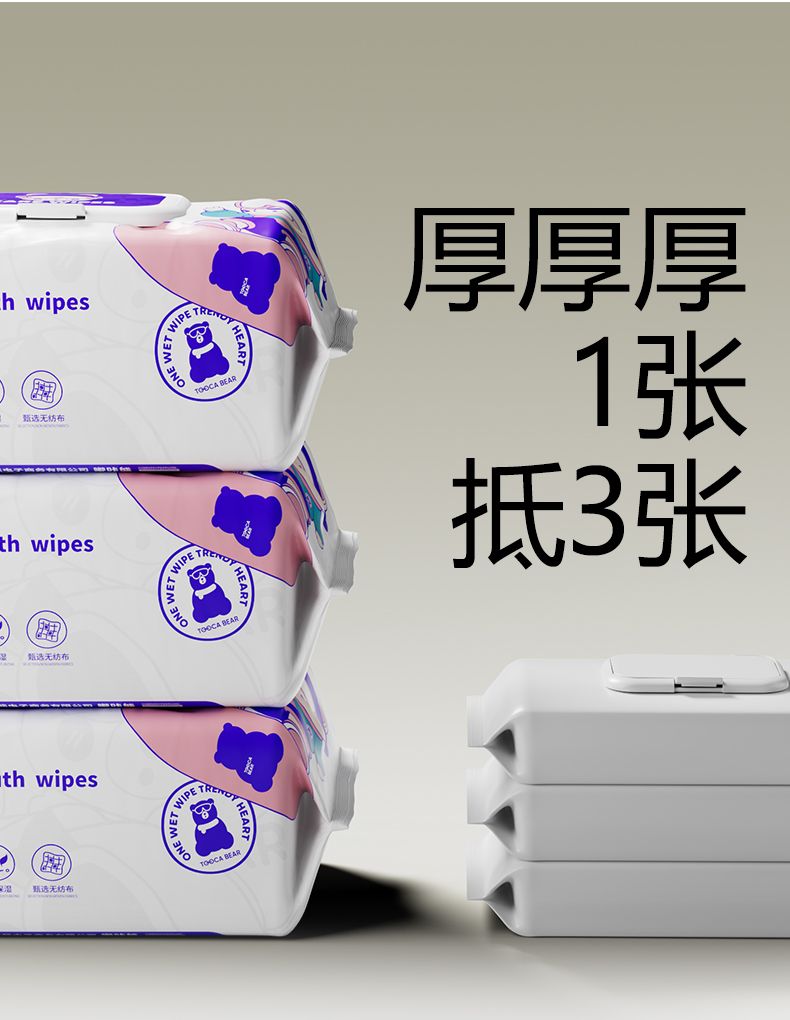 嘟咔熊手口护理湿巾80抽家庭装安全材质老人小孩均可用-SKIING系列