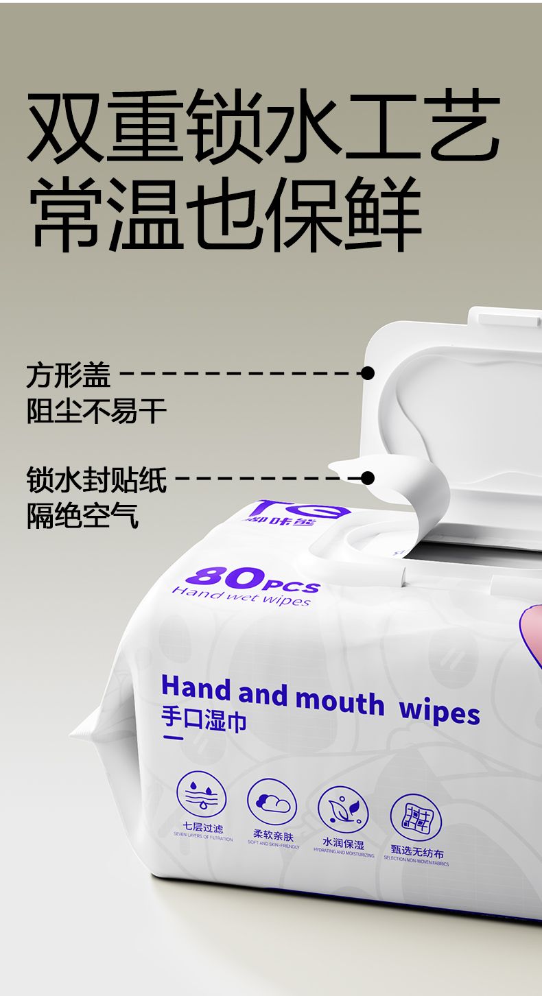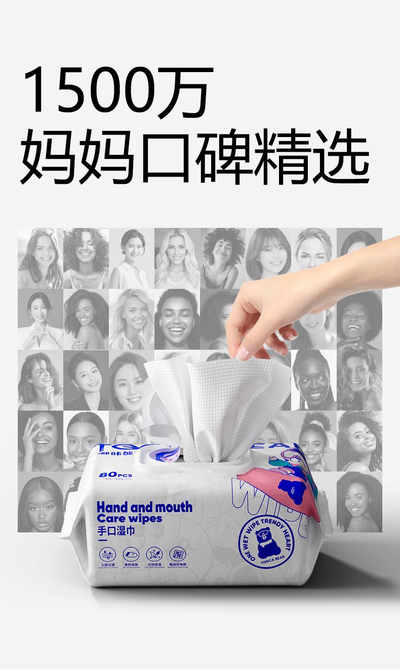 商品名称:嘟咔熊手口护理湿巾80抽家庭装安全材质老人小孩均可用-SKIING系列
