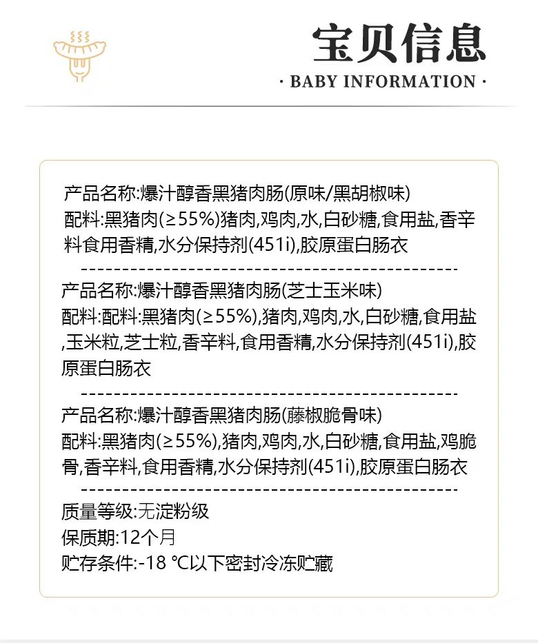 商品名称:傅家百味 爆汁醇香黑猪肉肠