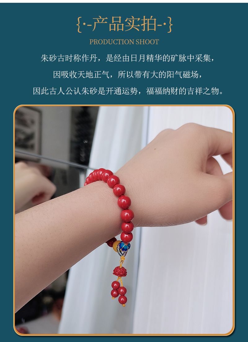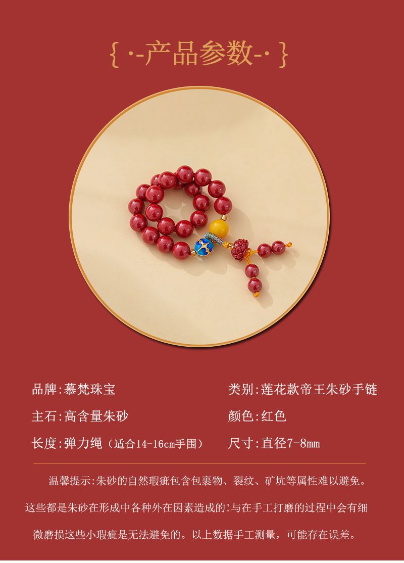 商品名称:莲花款高含量帝王朱砂手链[F048]