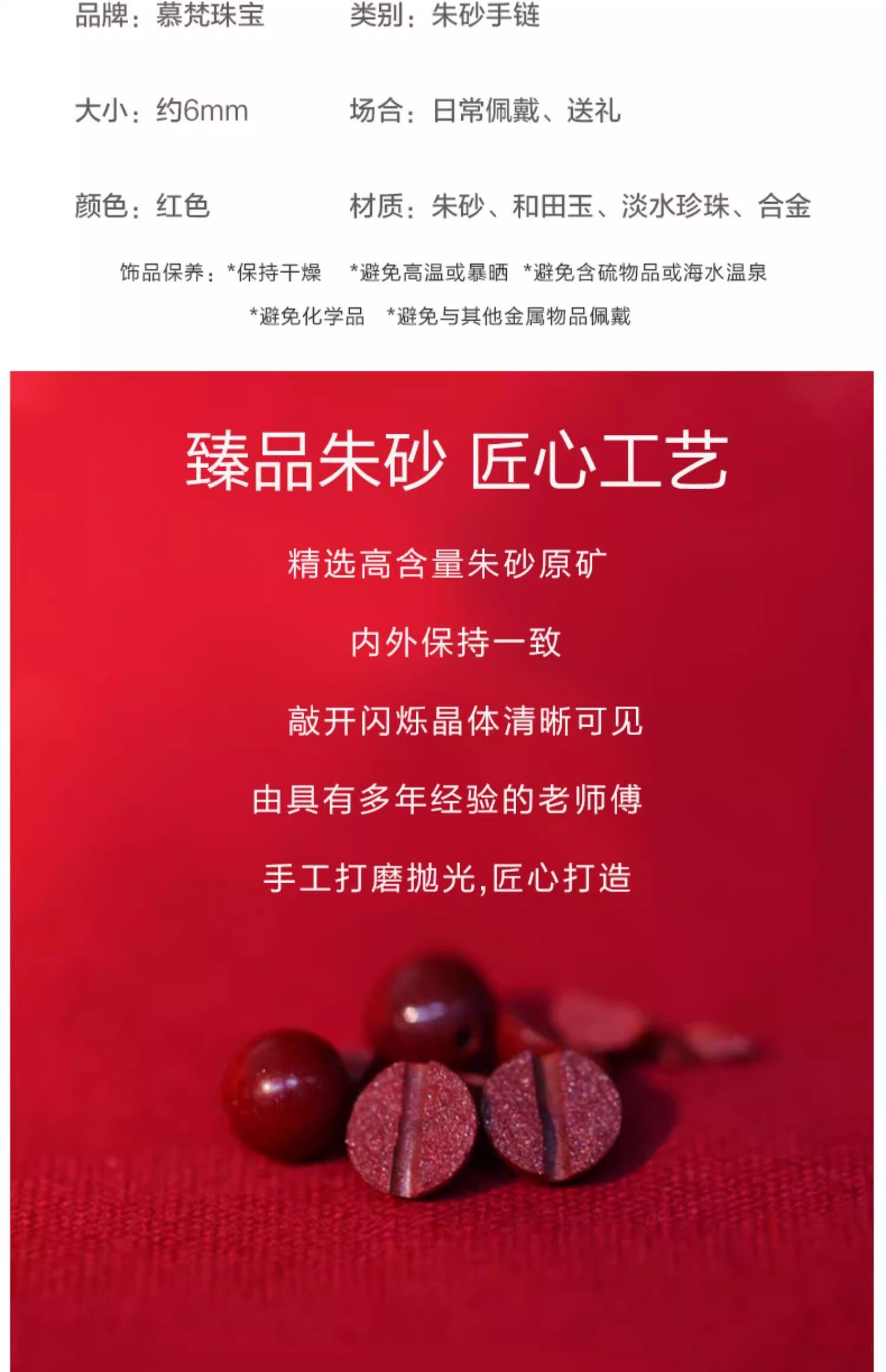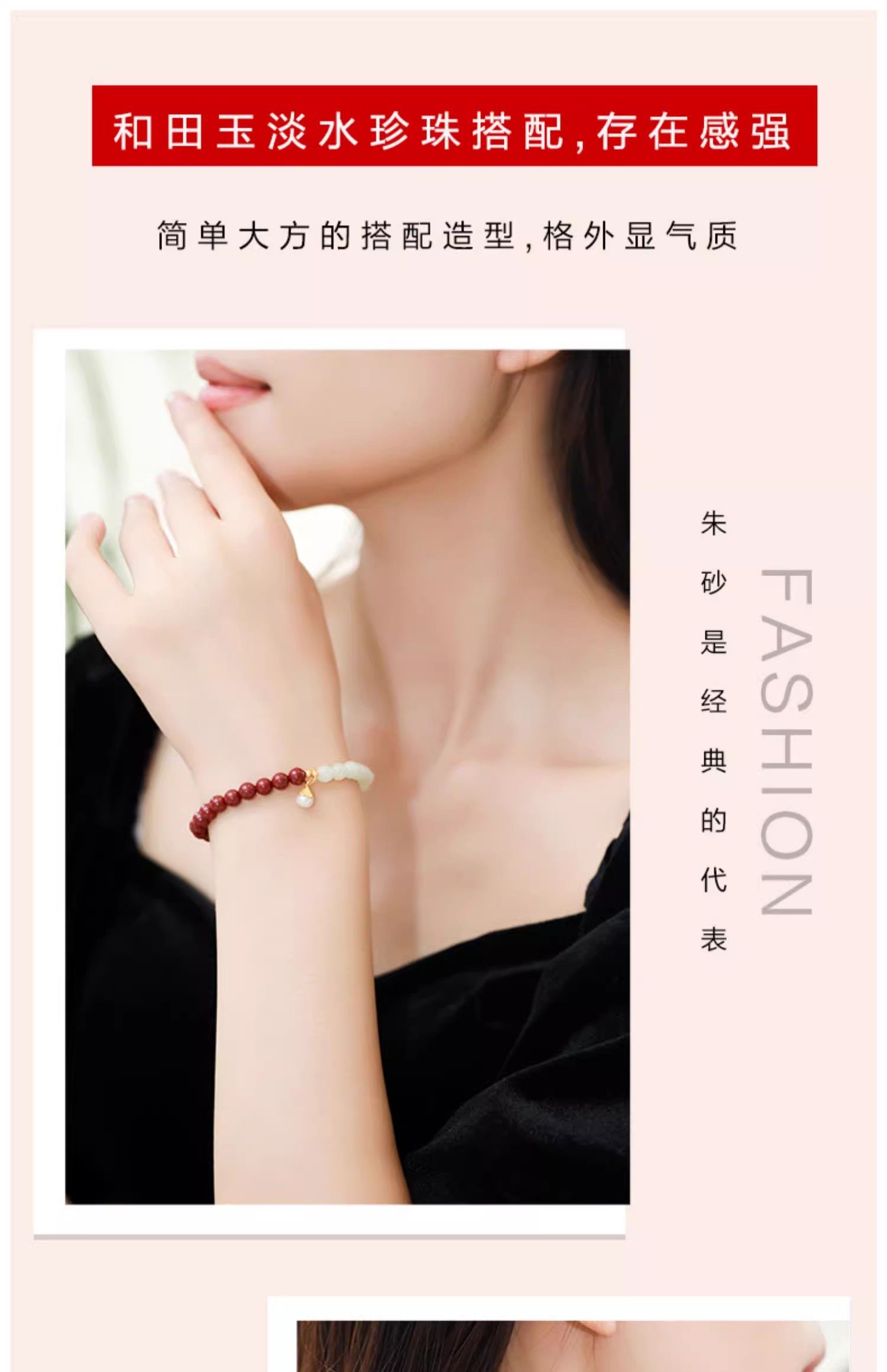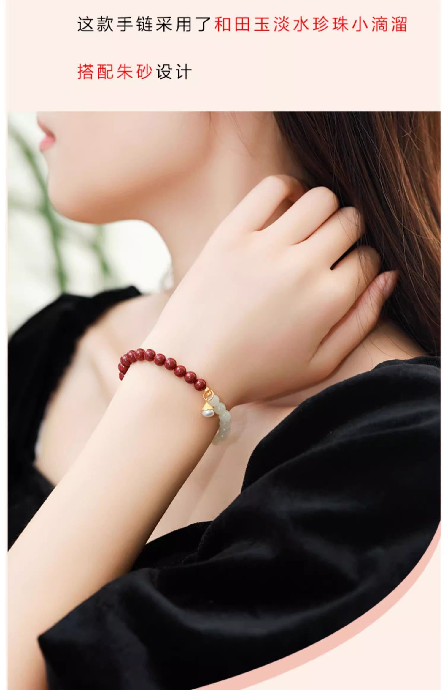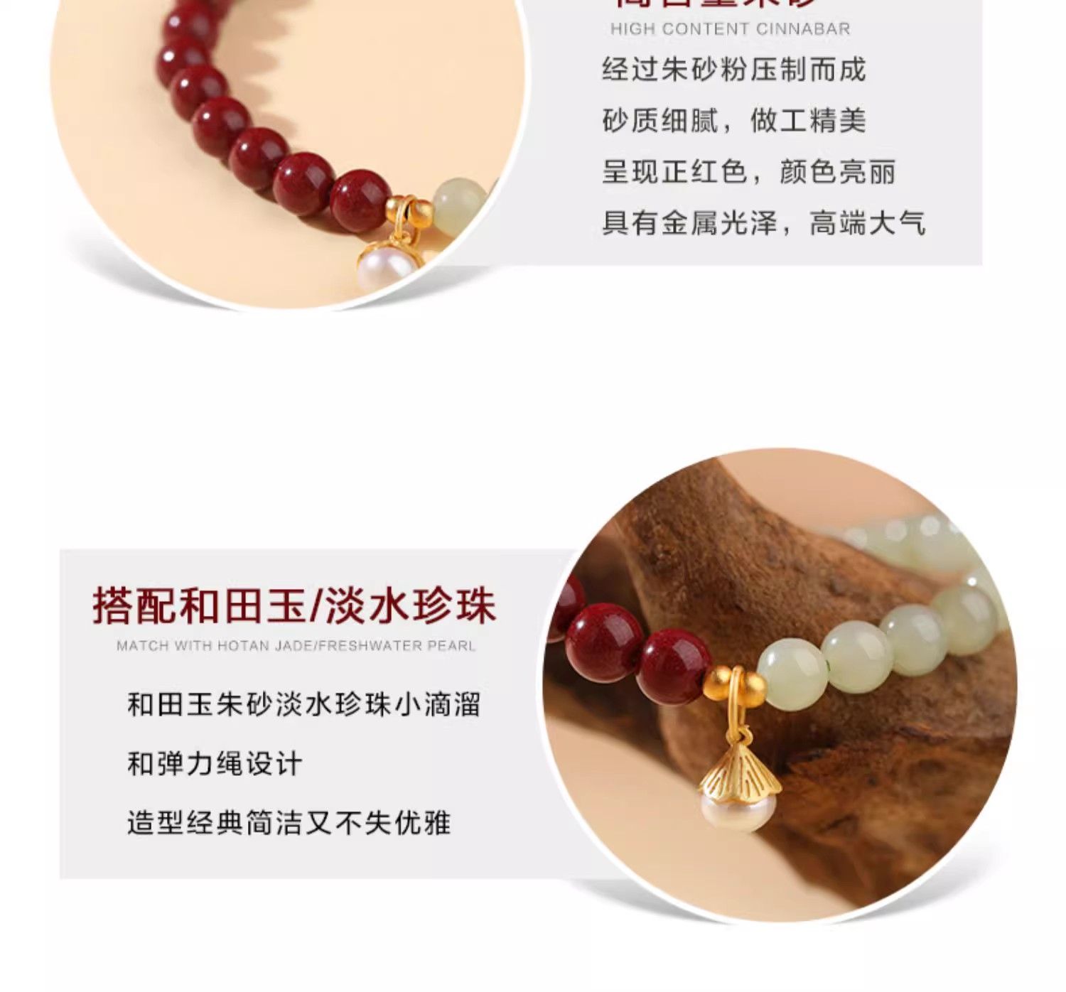 商品名称:高纯度朱砂和田玉珍珠紫金砂手链