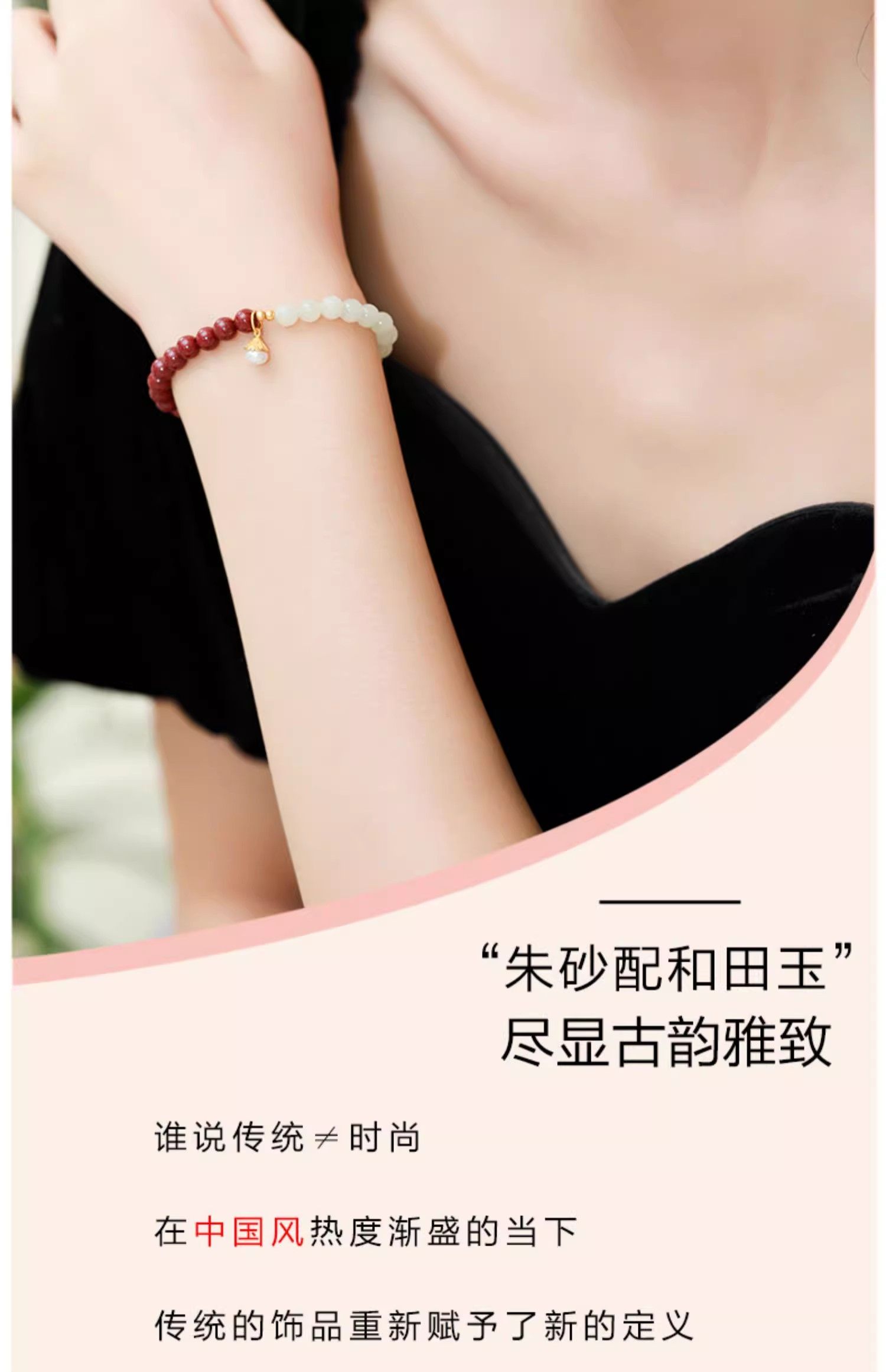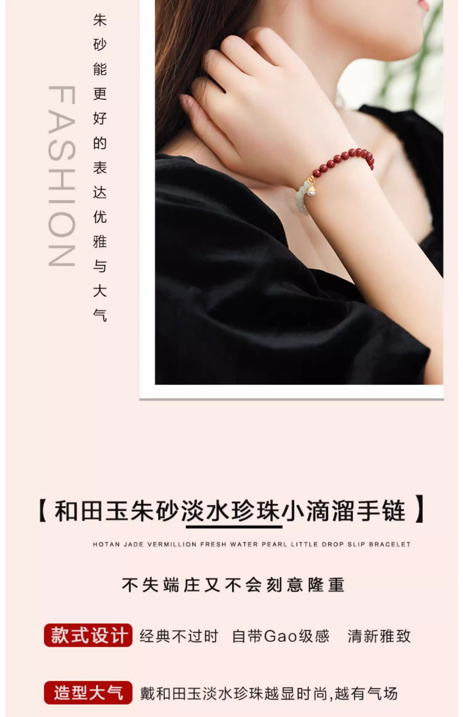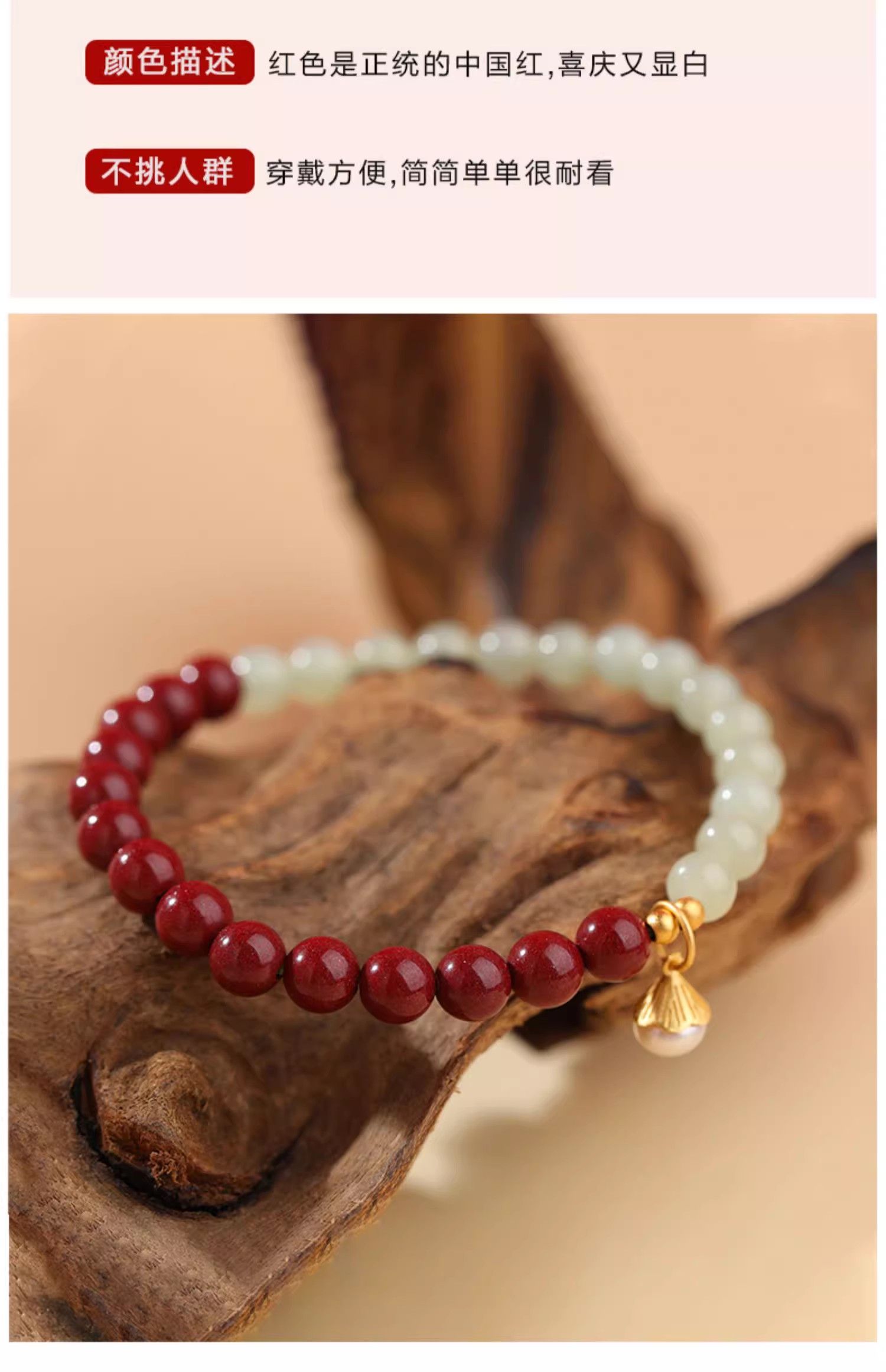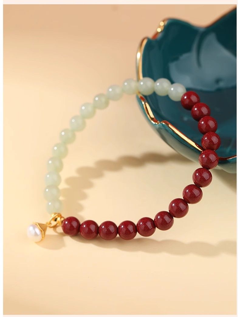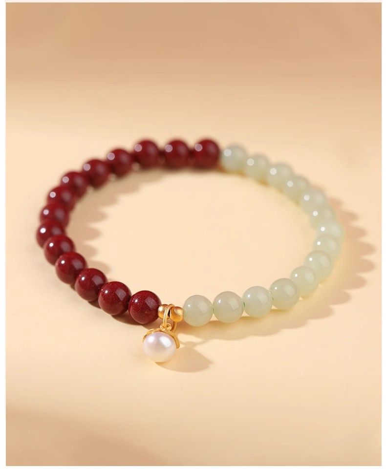 商品名称:高纯度朱砂和田玉珍珠紫金砂手链