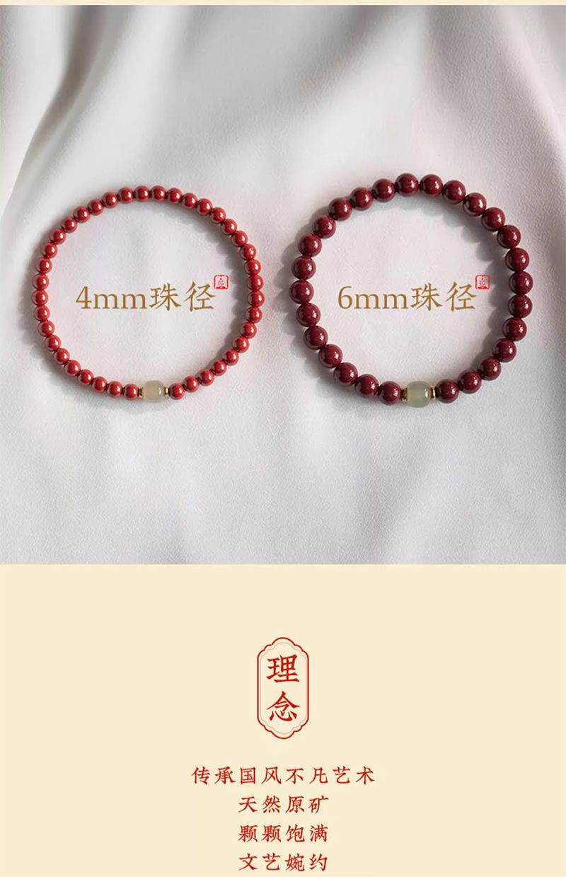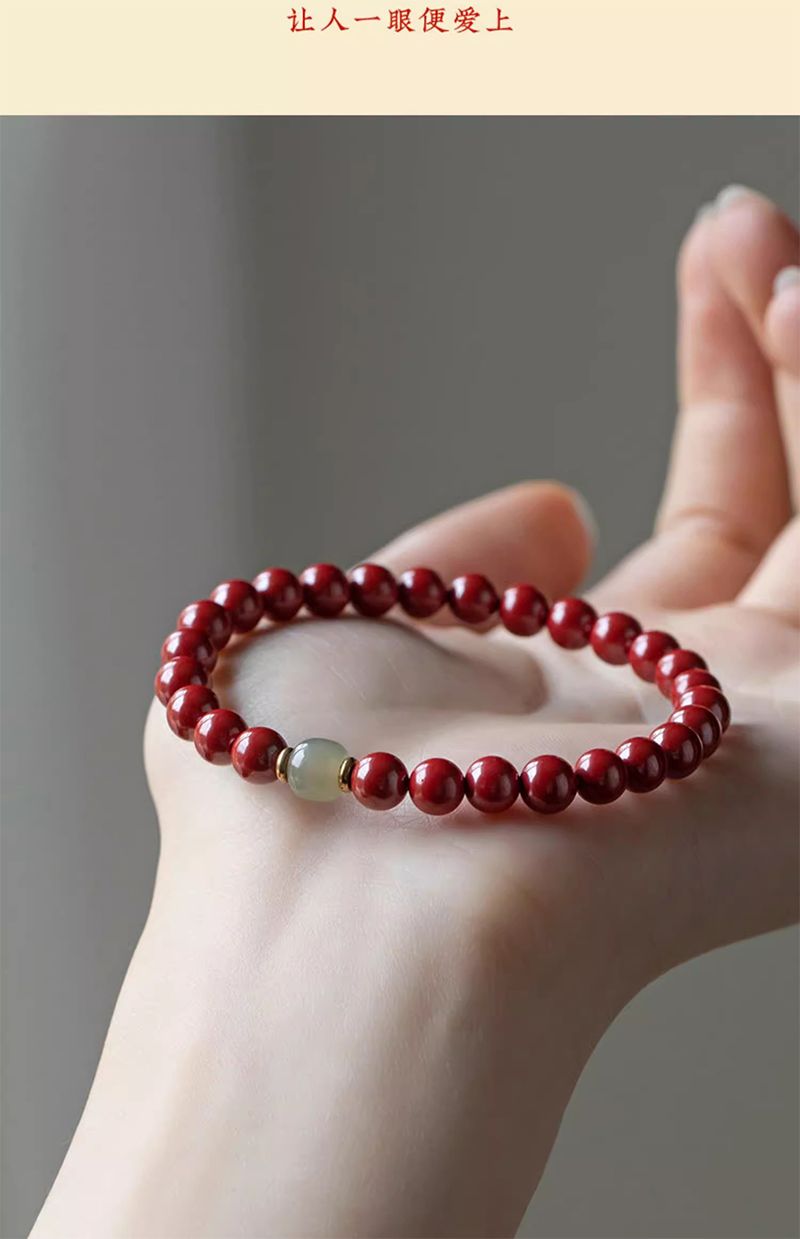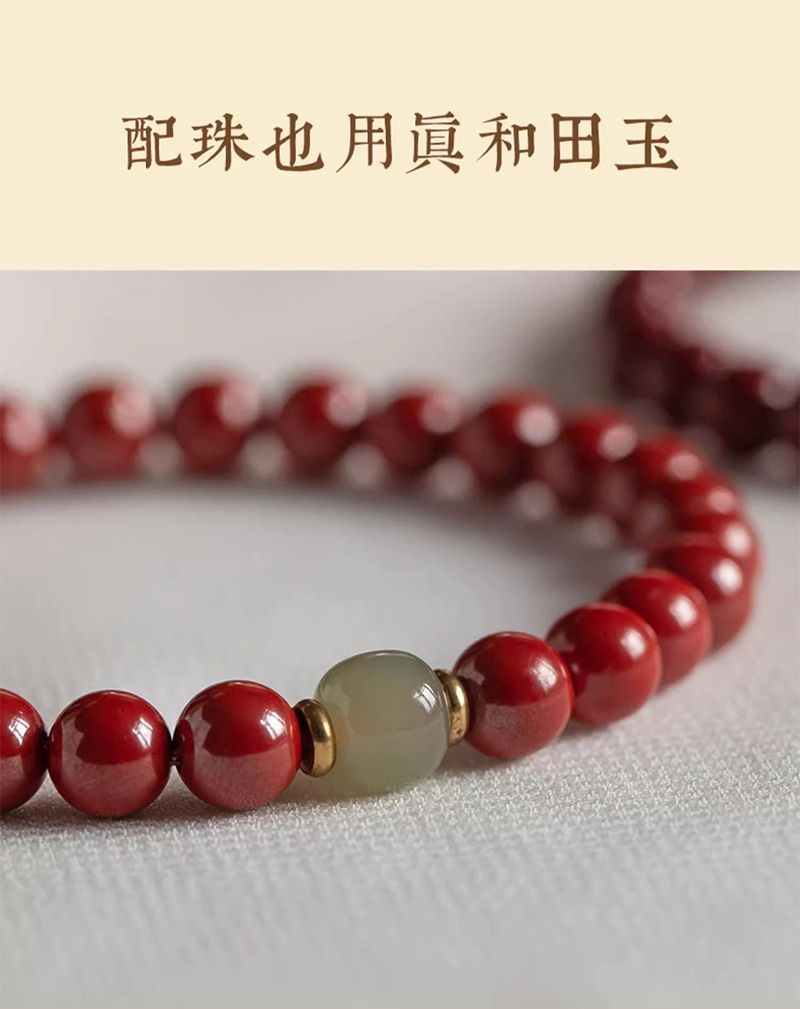商品名称:玉见欢喜和田玉朱砂红砂本命年手串
