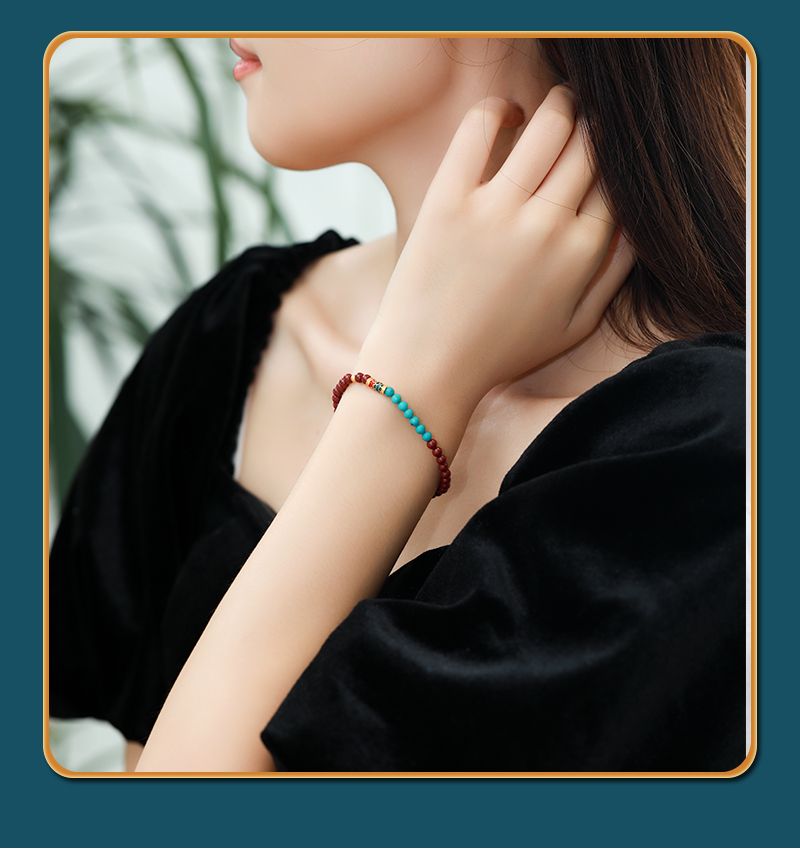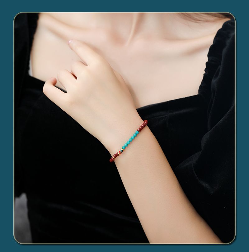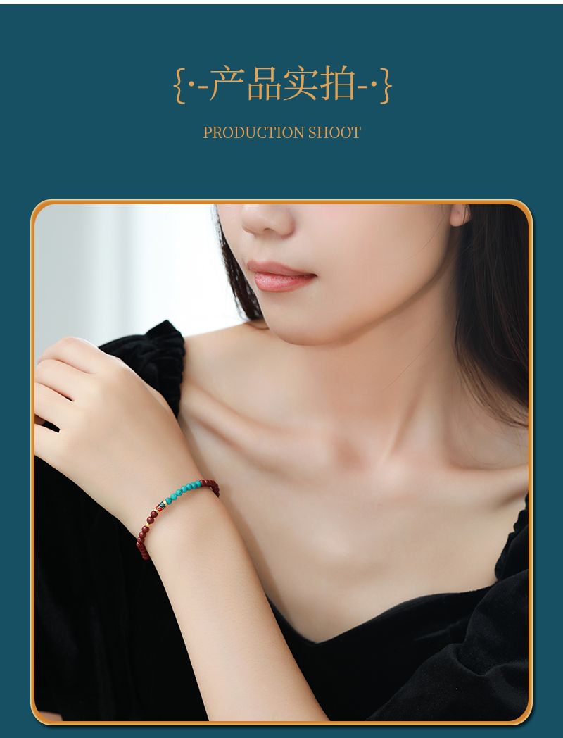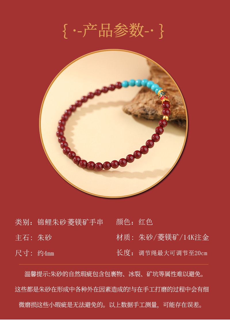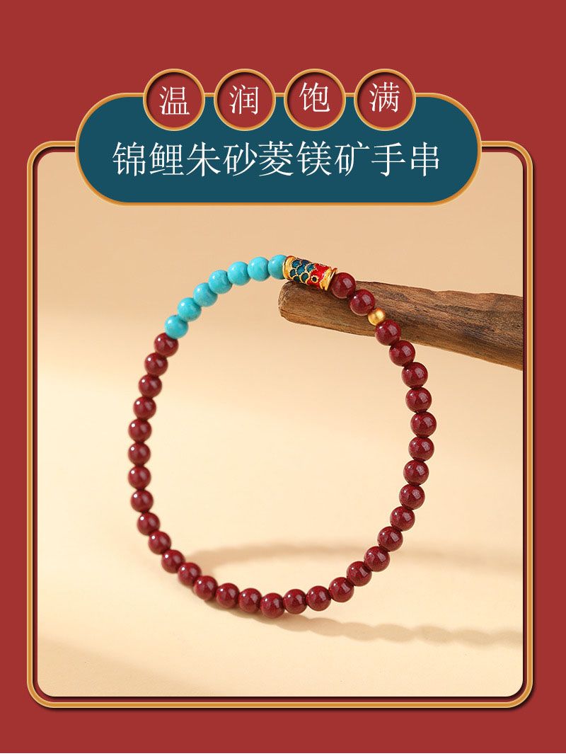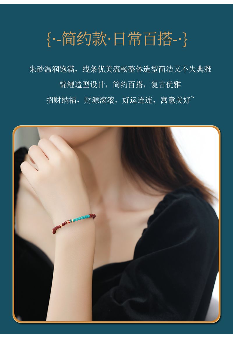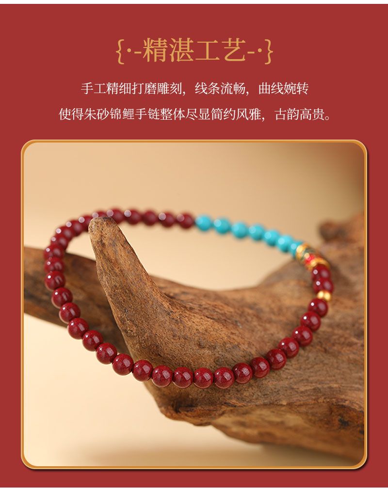 商品名称:本命年锦鲤朱砂绿松石手串