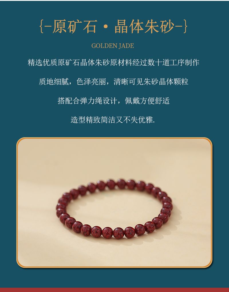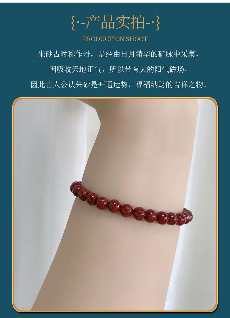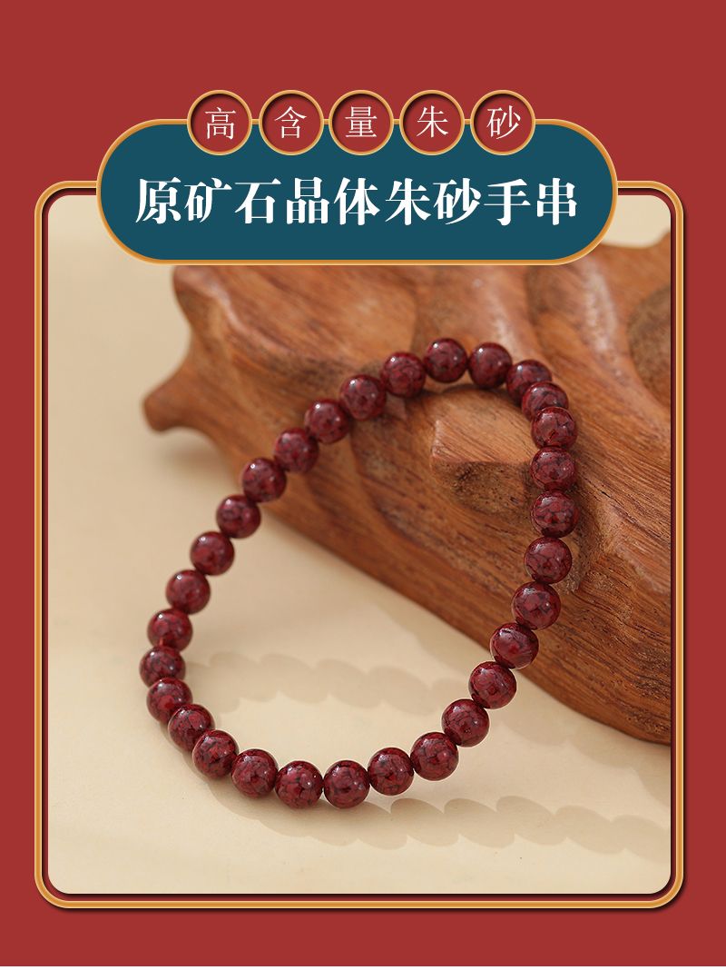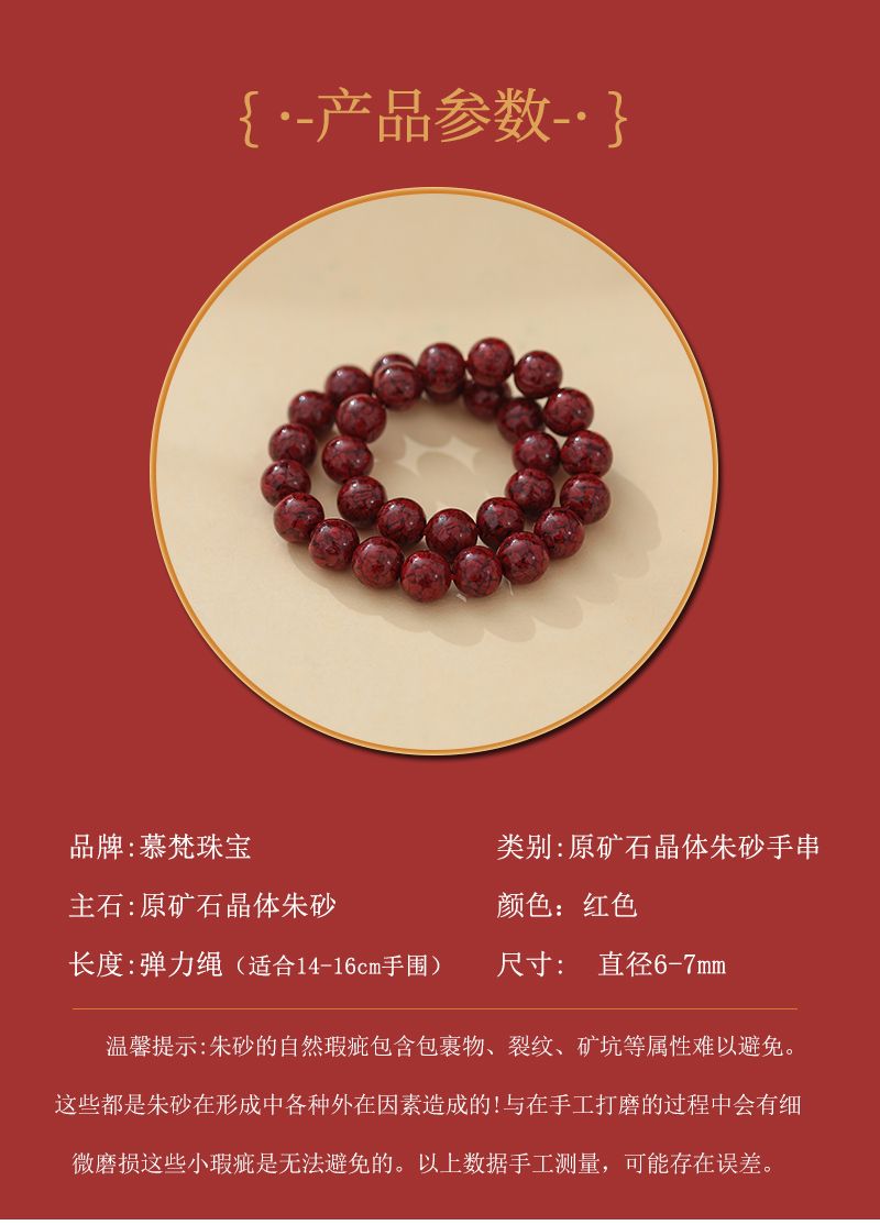 商品名称:原矿石晶体朱砂手串[F002]6mm
