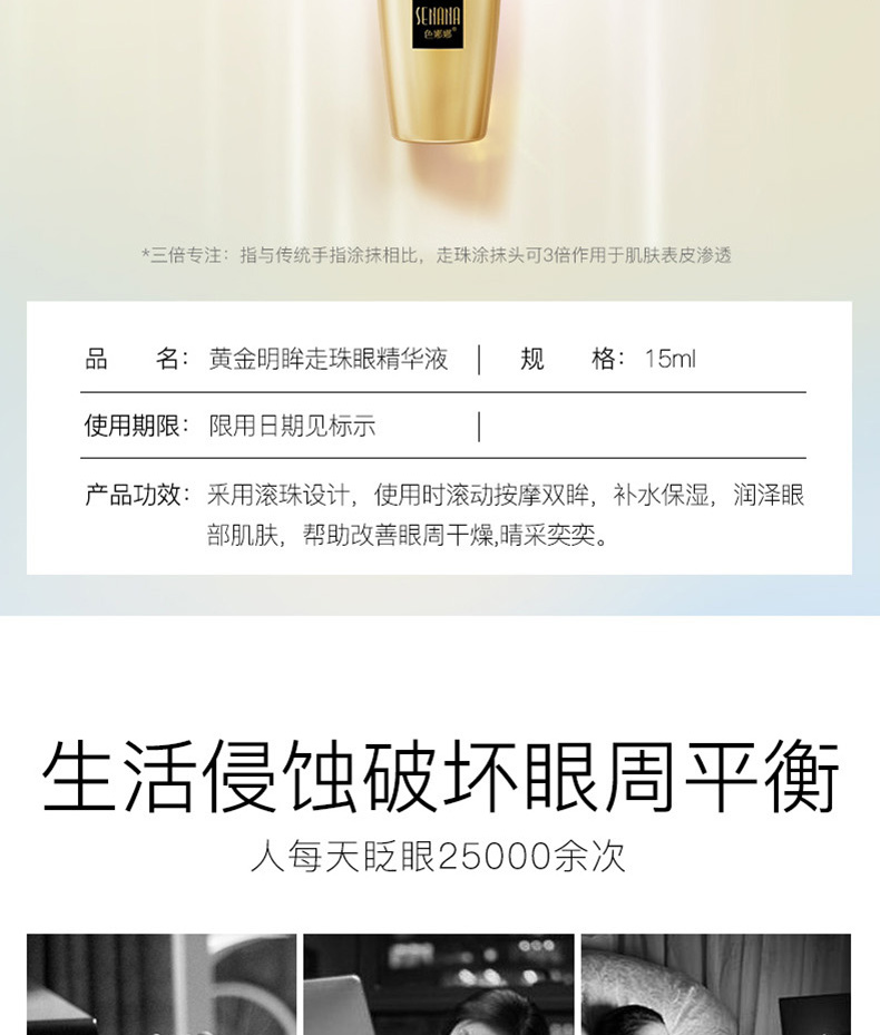商品名称:色娜娜黄金明眸走珠眼精华液 补水保湿眼部护理 15ml