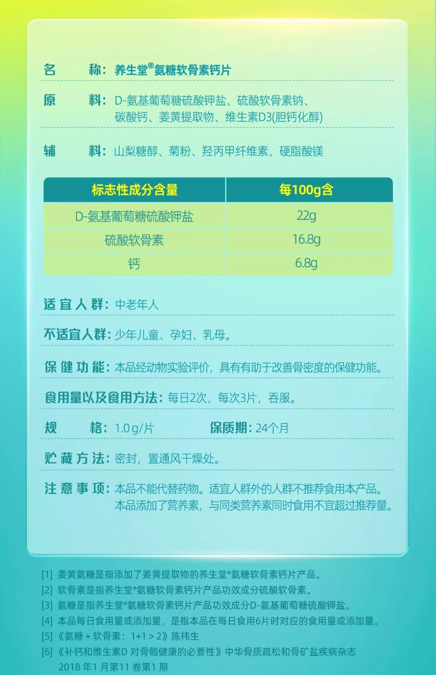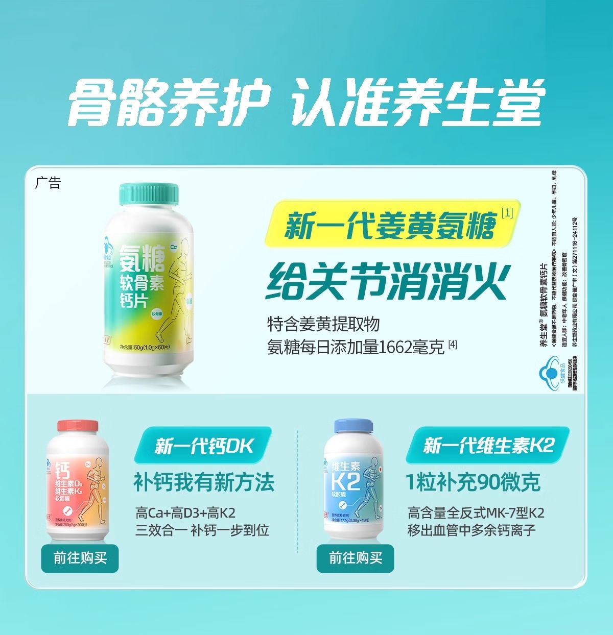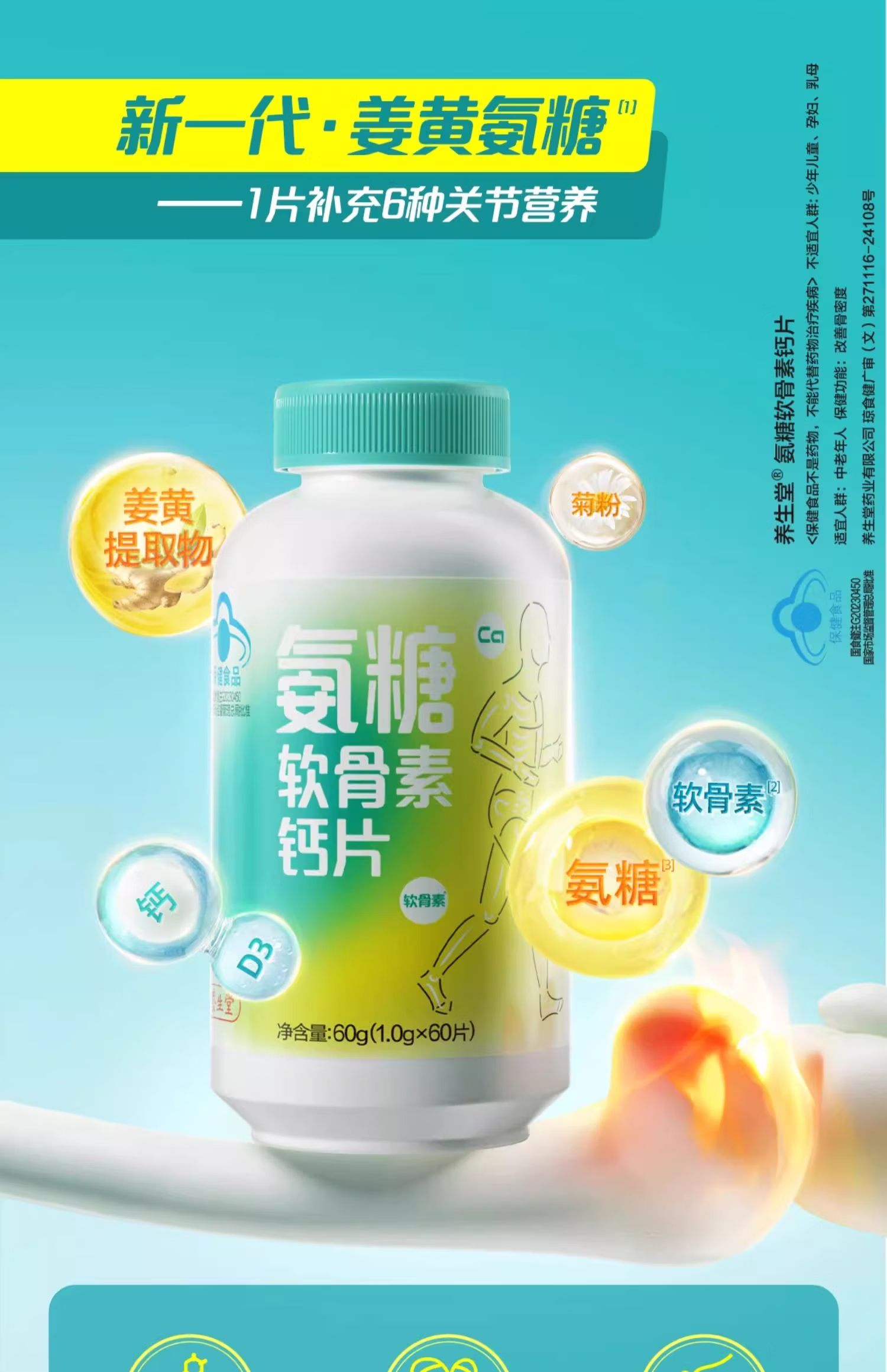 商品名称:养生堂 氨糖软骨素中老年护关节钙片特含姜黄氨糖 60片