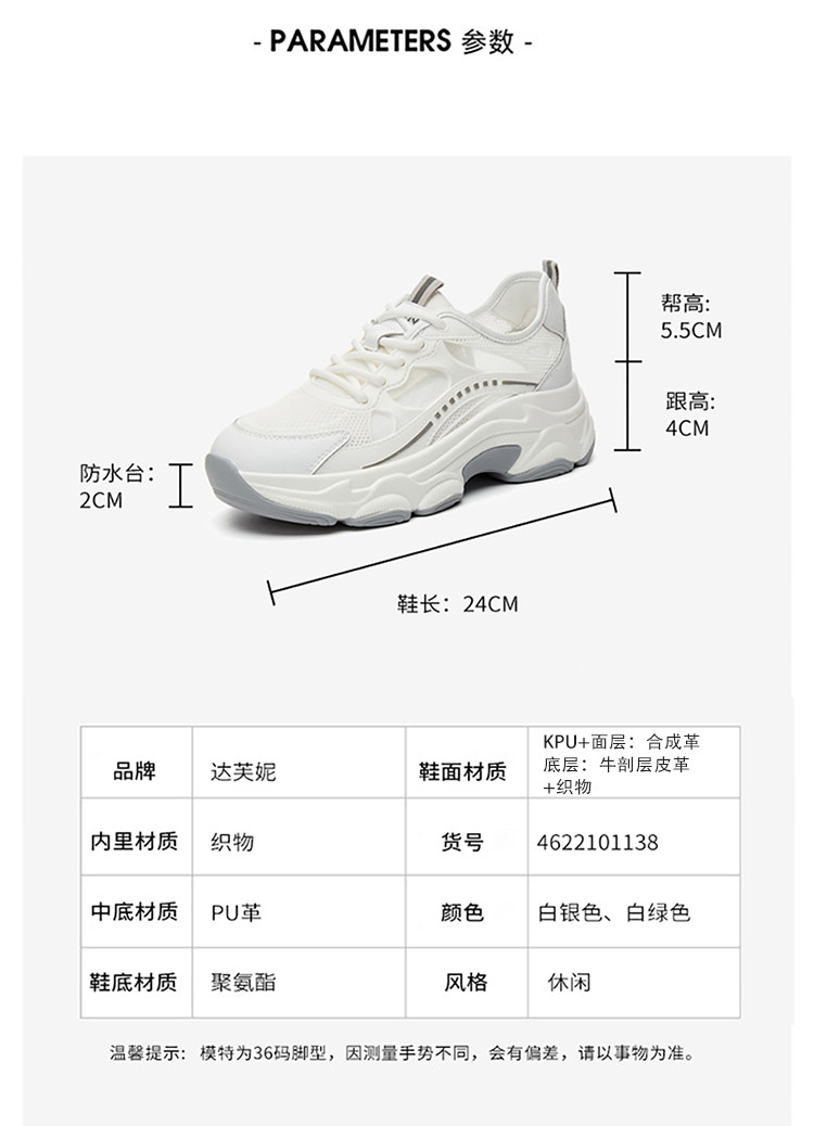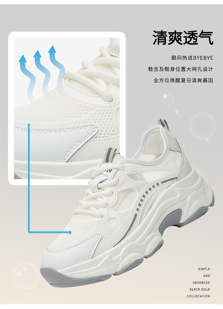 商品名称:【热卖爆款】夏季透气老爹鞋户外休闲鞋薄款透气运动鞋小白鞋女鞋 443159
