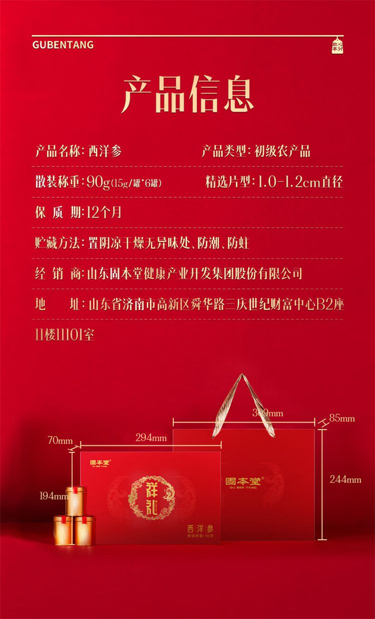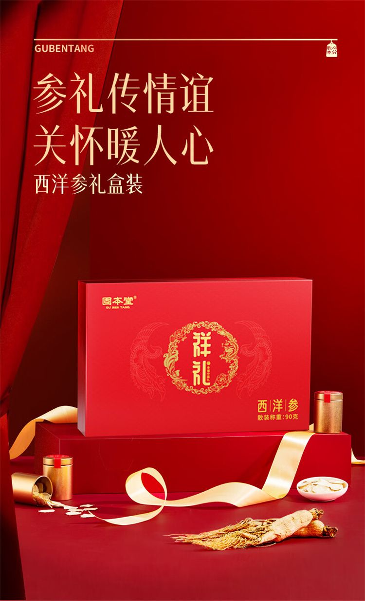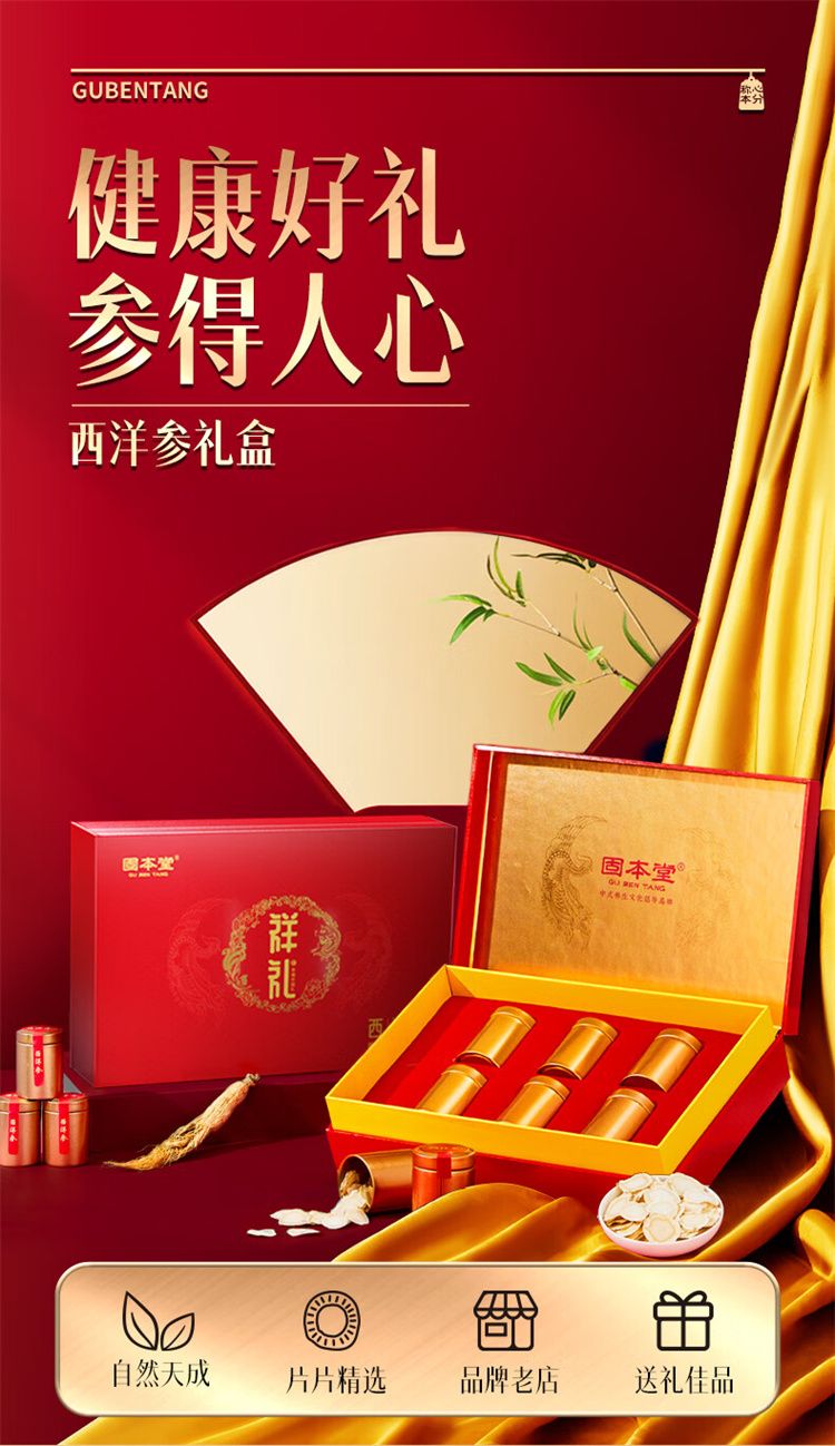 商品名称:固本堂 西洋参礼盒(1.0cm-1.2cm)90g
