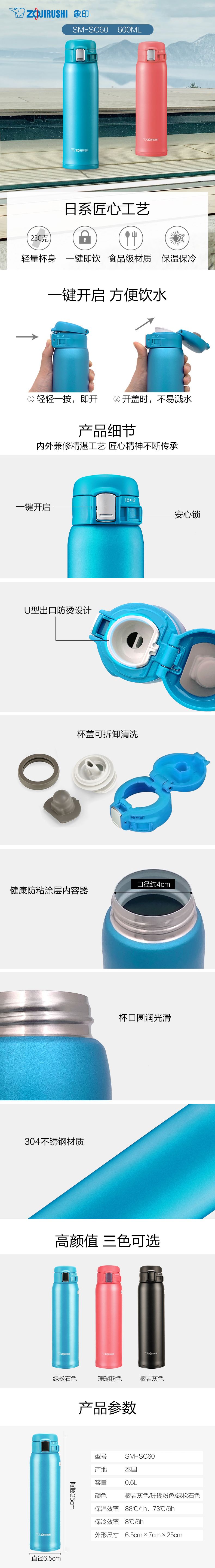 商品名称:象印 不锈钢真空保温杯 600ML SM-SC60
