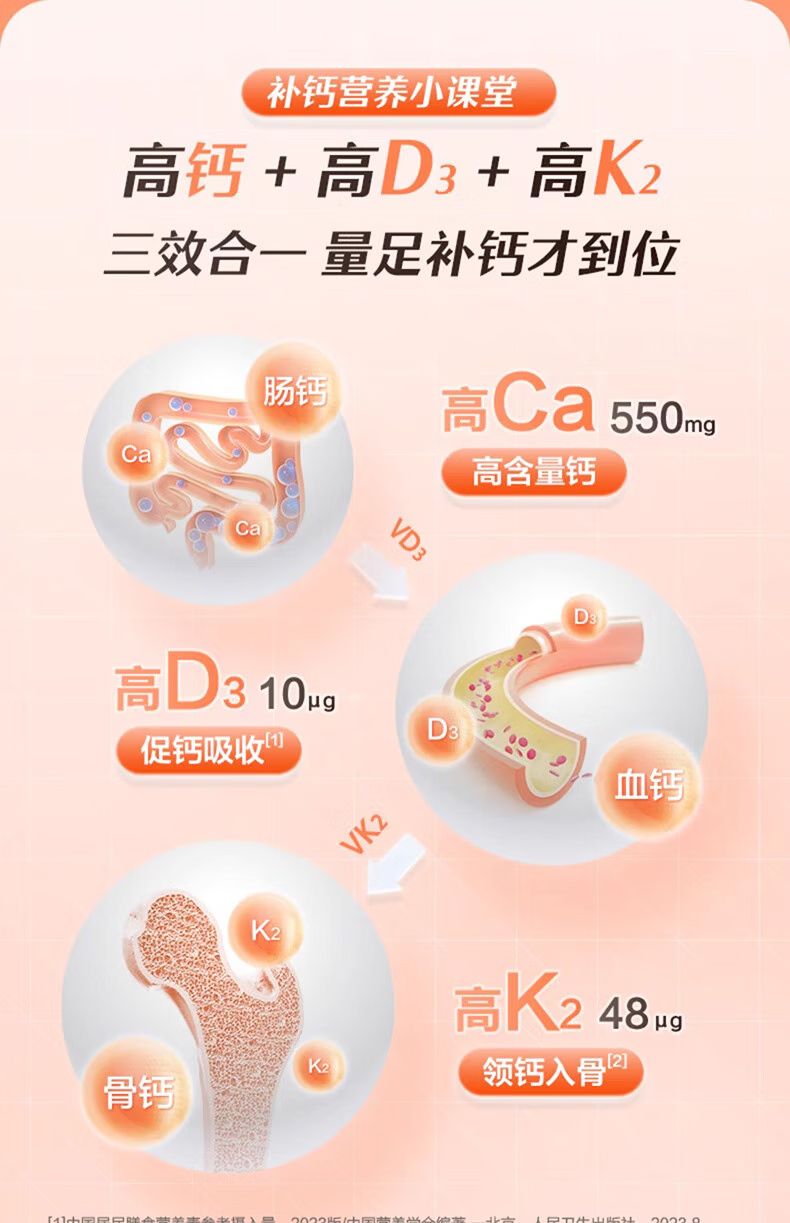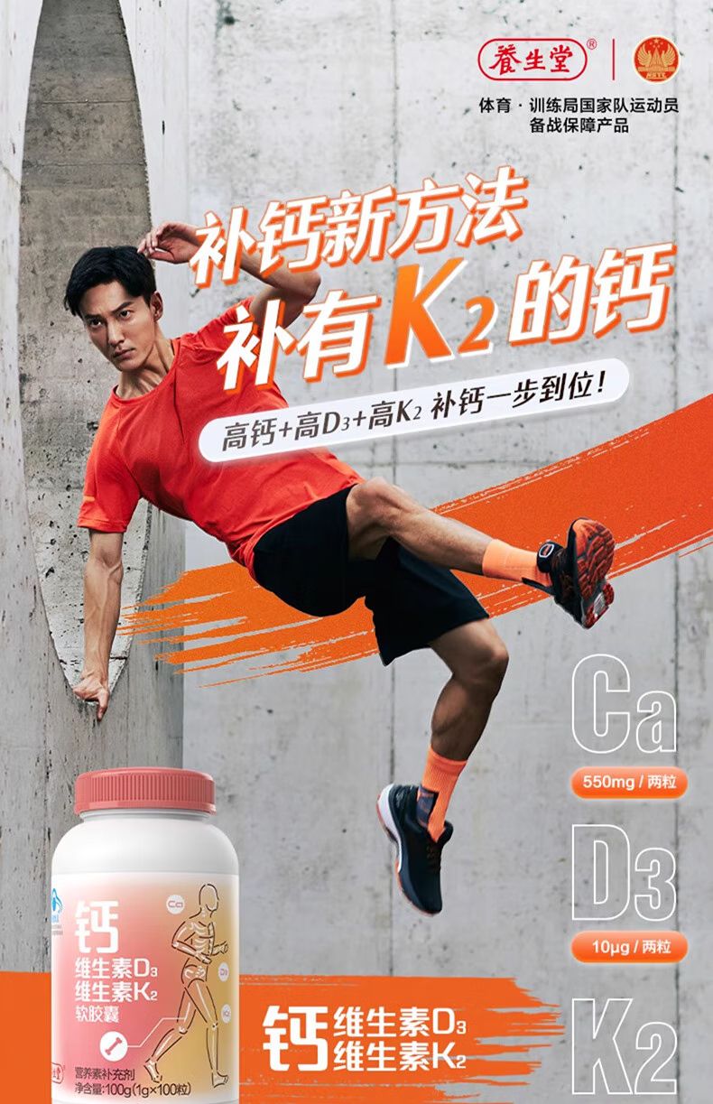 养生堂 钙片维生素d3维生素k2软胶囊 60粒 青少年孕妇哺乳期中老年补钙