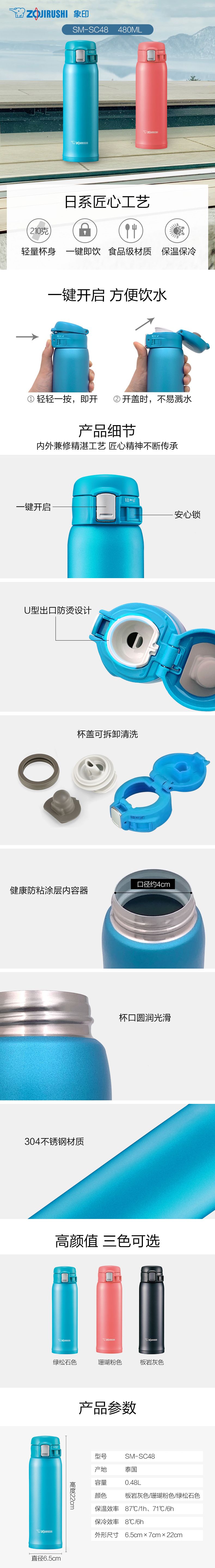 商品名称:象印 不锈钢真空保温杯 480ML SM-SC48