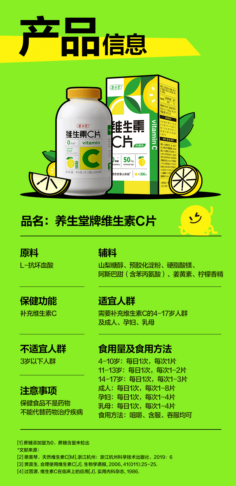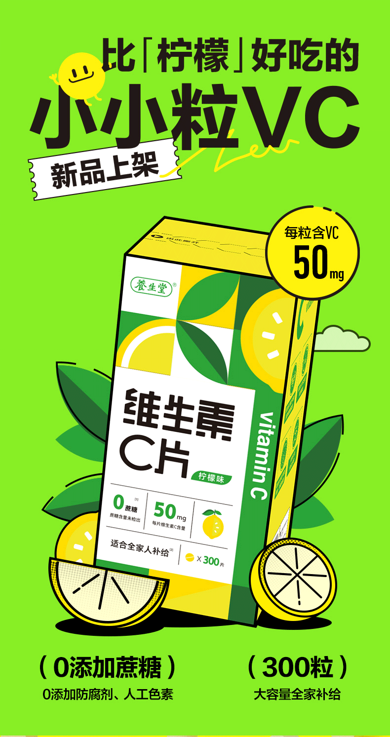 商品名称:养生堂 维生素C咀嚼片 300片*2瓶柠檬味