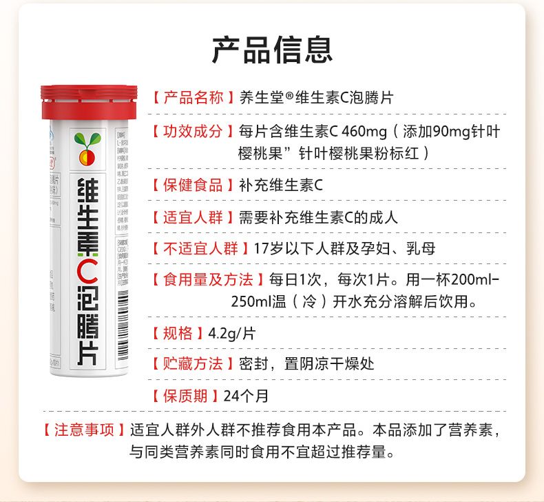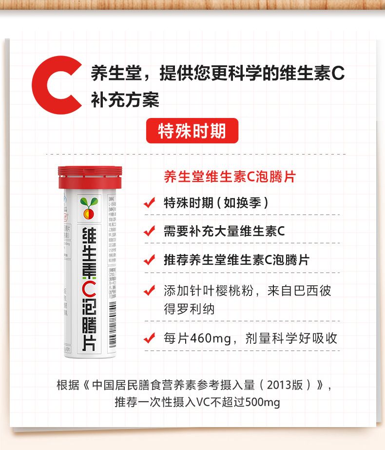 商品名称:养生堂 维生素C泡腾片 10片*3支 针叶樱桃口味