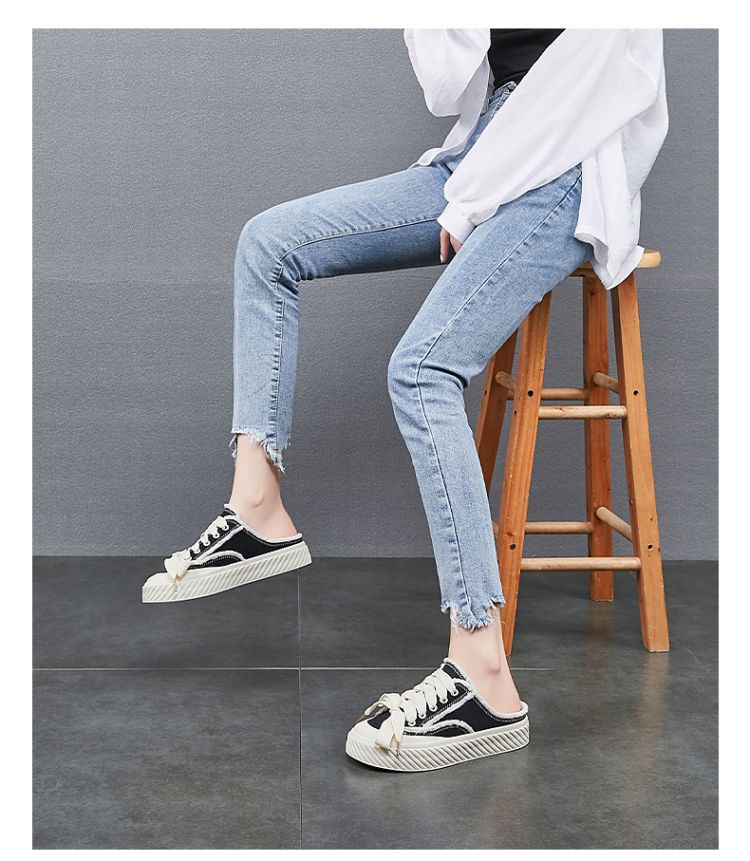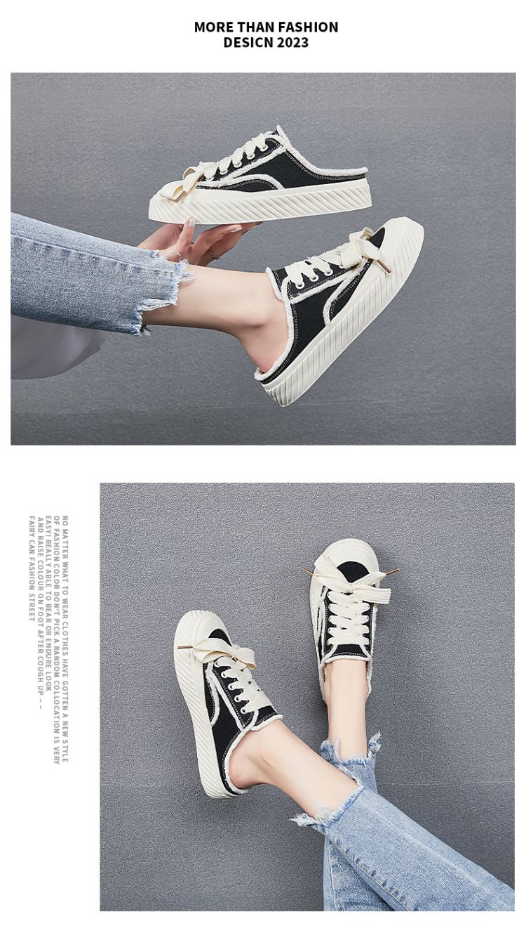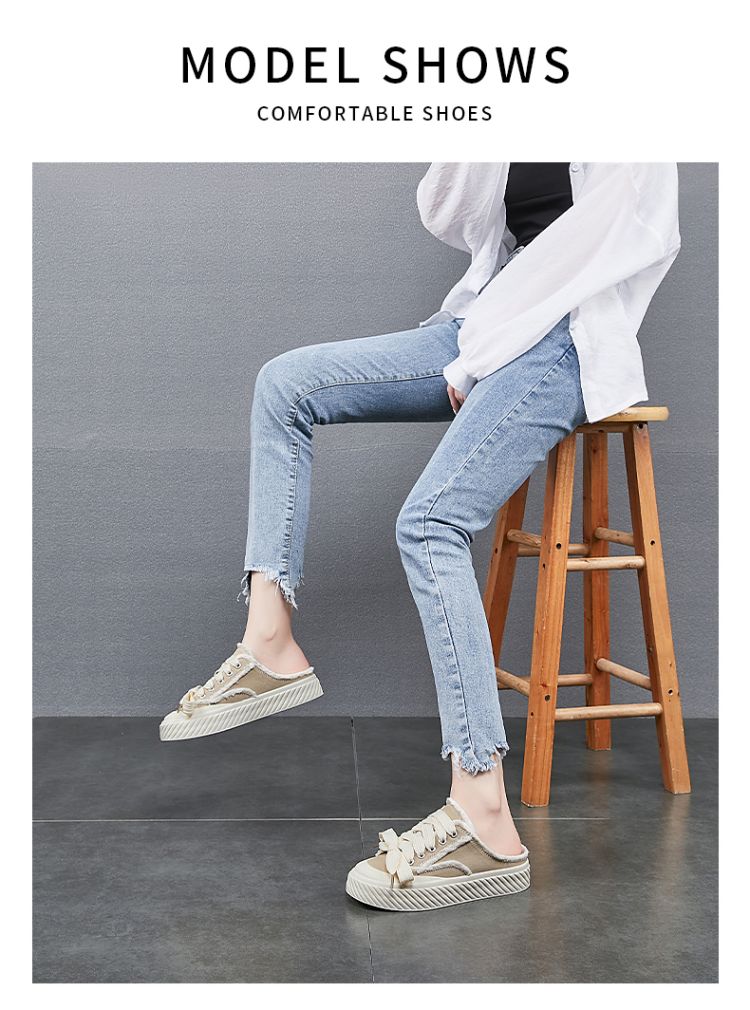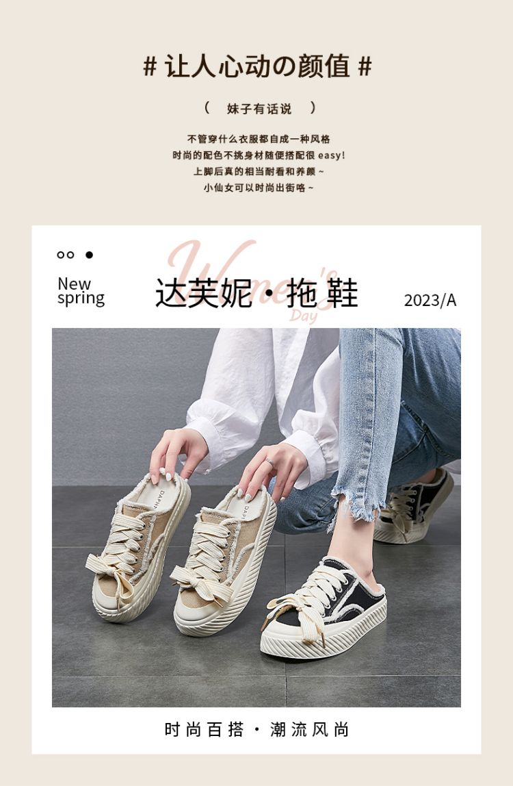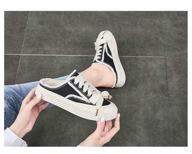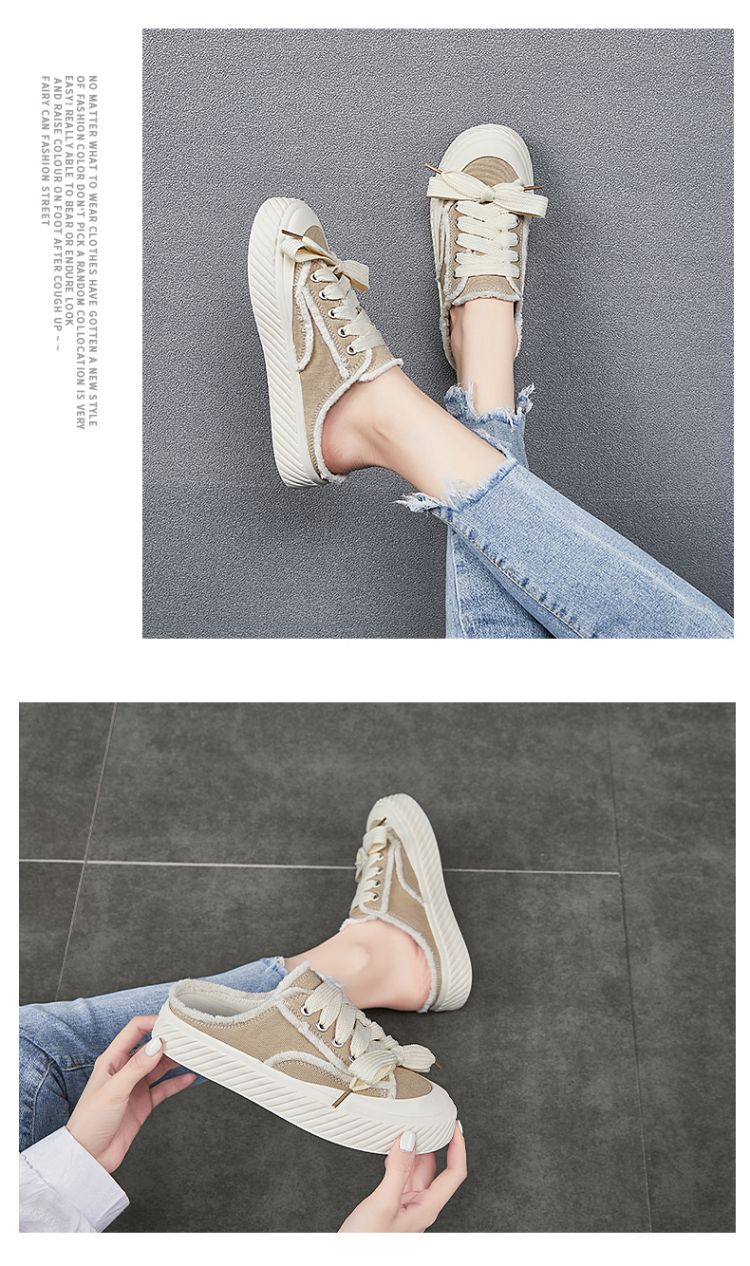 商品名称:【一脚蹬女鞋】春夏潮流复古半拖款板鞋透气女帆布鞋一脚蹬懒人鞋 980887