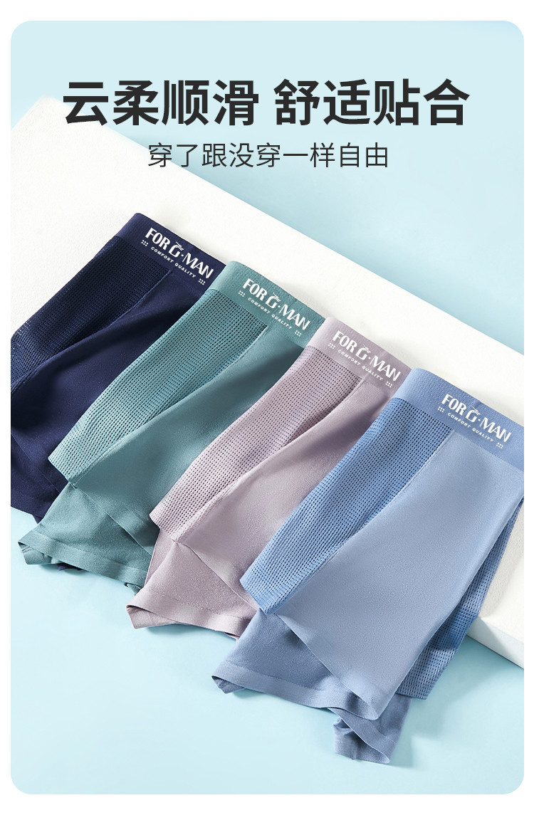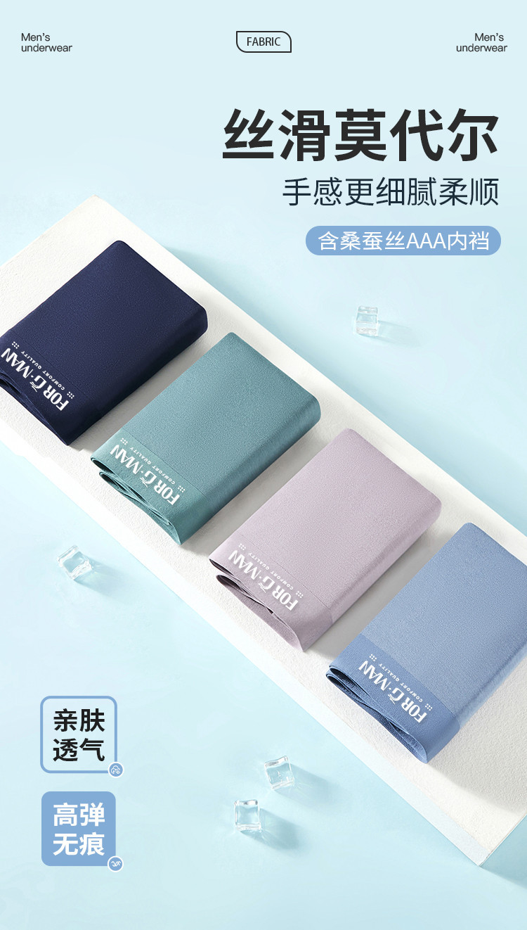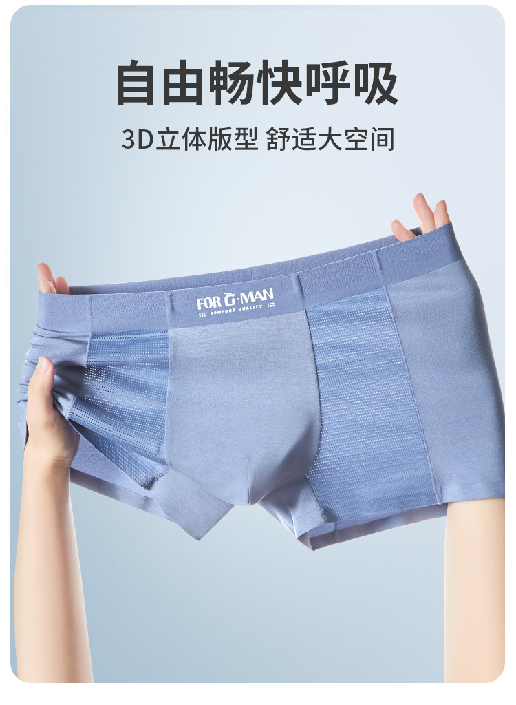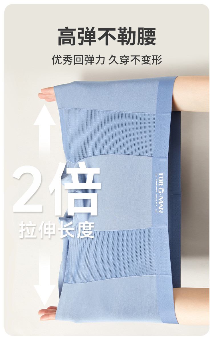 商品名称:【3A抑菌 含桑蚕丝里裆】男士内裤男莫代尔无痕网眼款平角短裤 369931