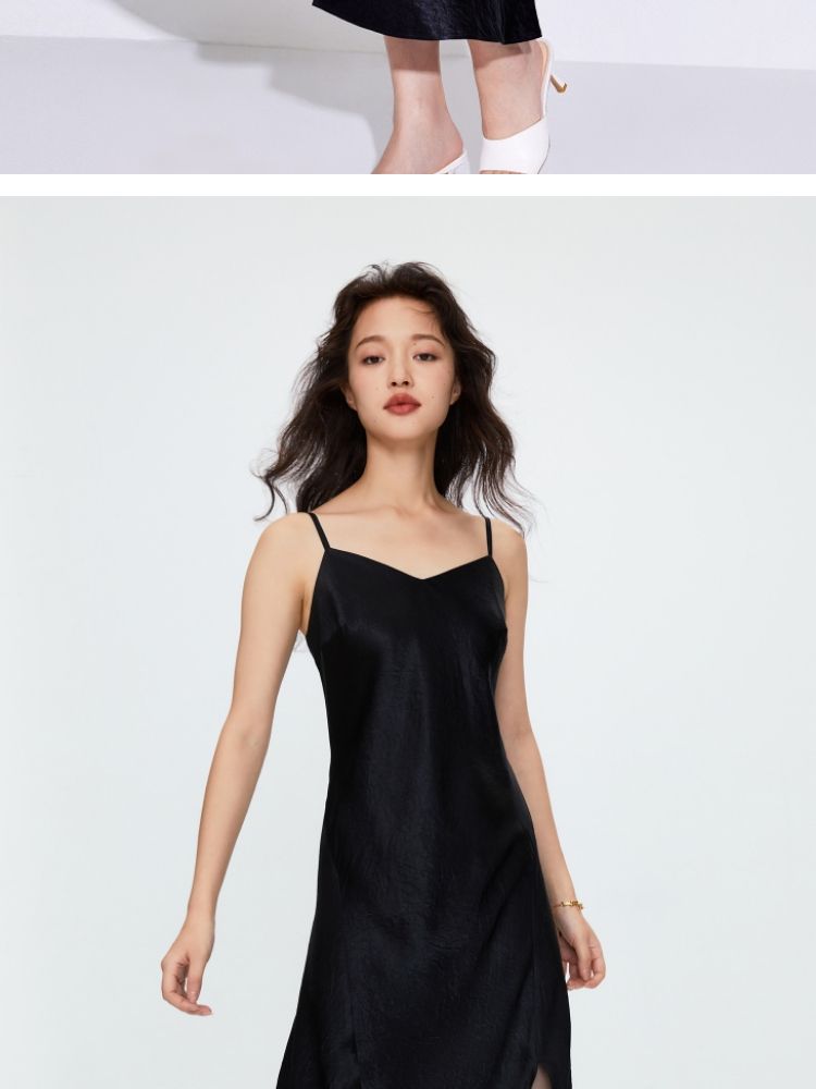 商品名称:【时尚法式】夏季显瘦V领吊带中长裙连衣裙女 113242