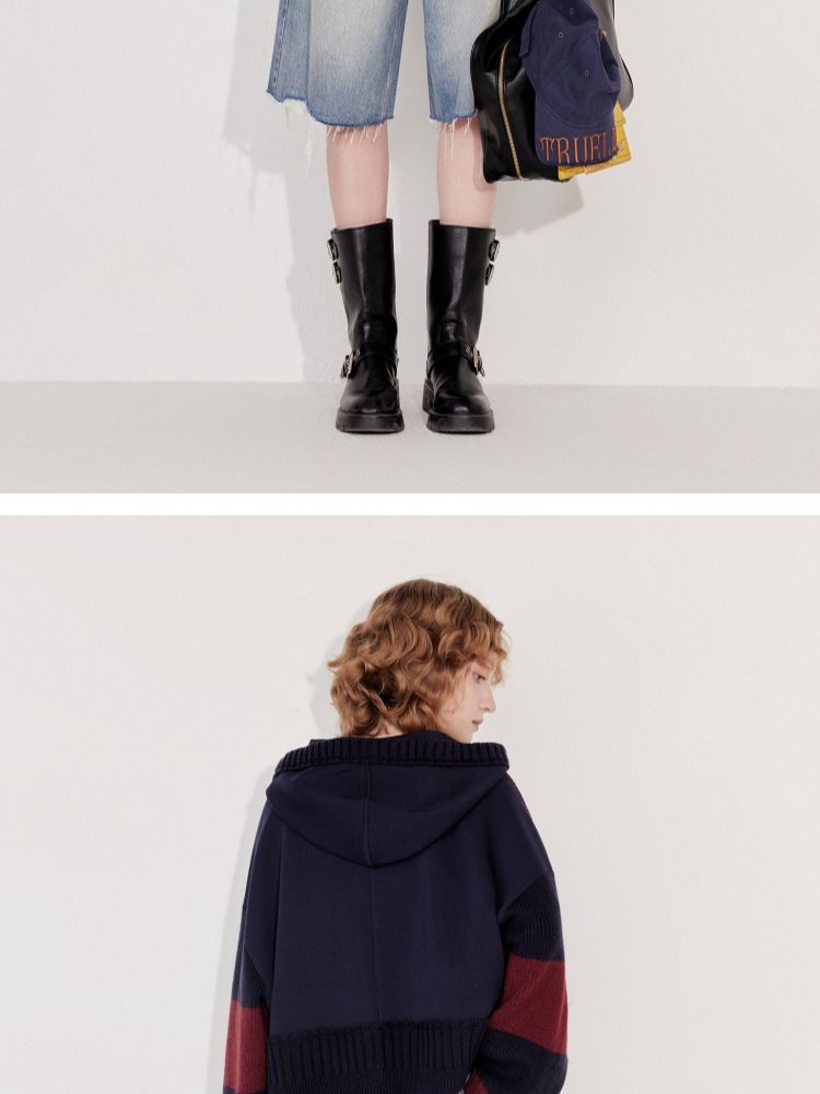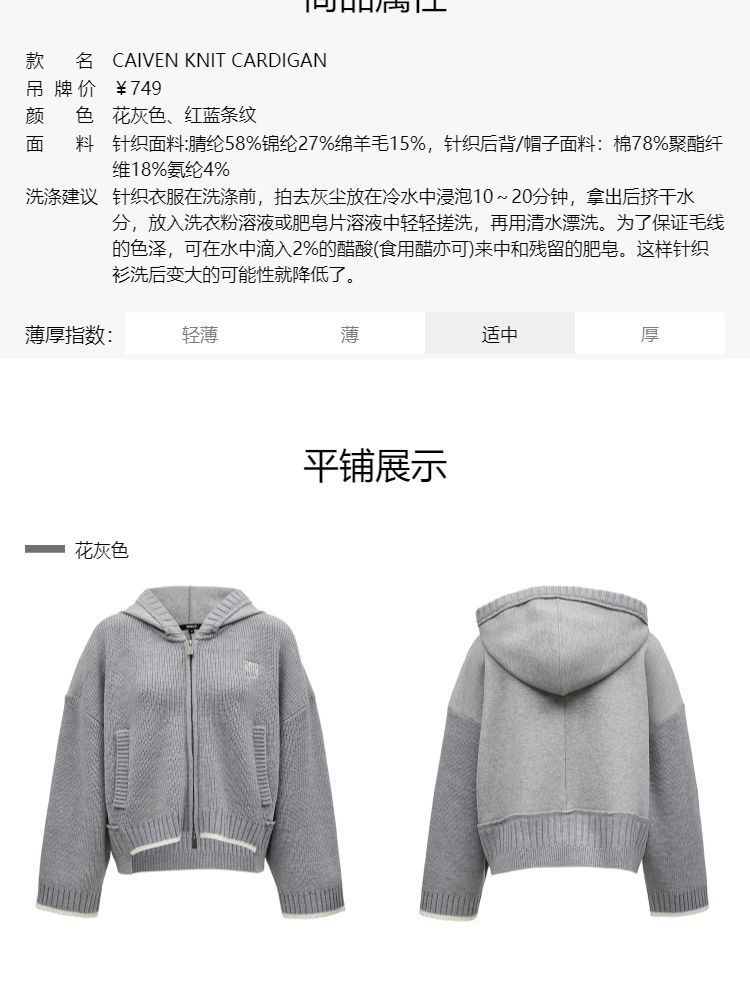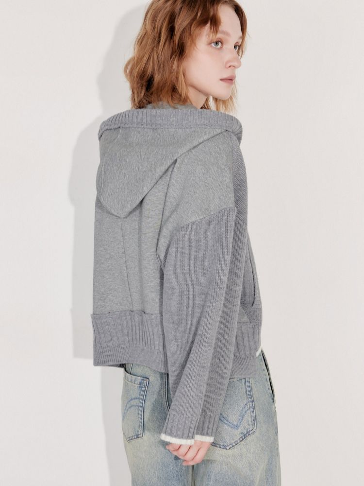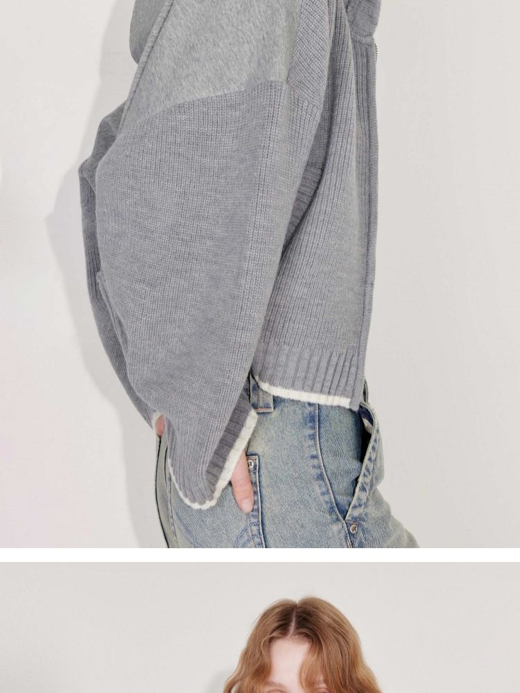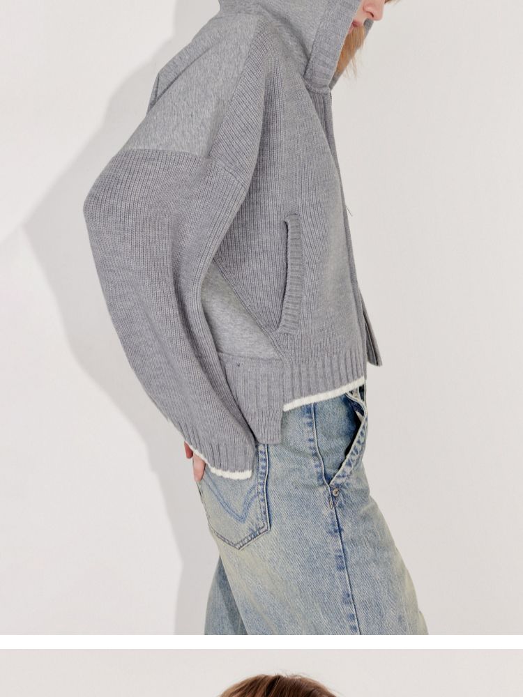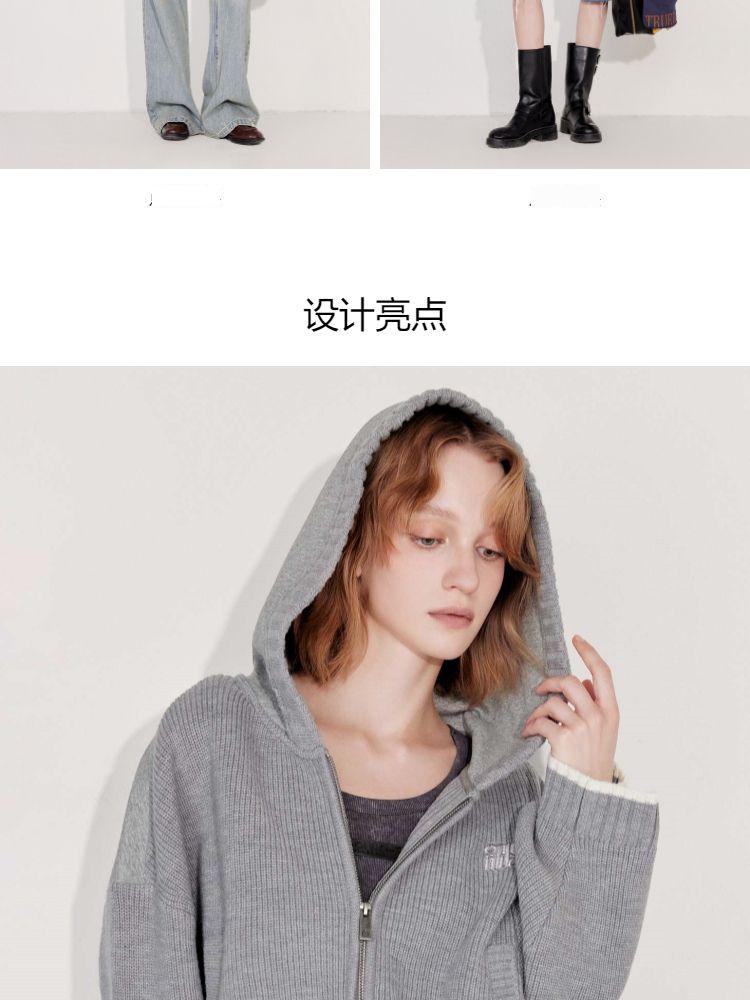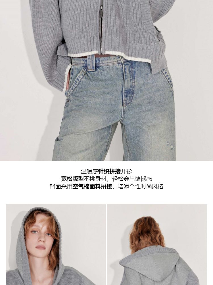 商品名称:【双向拉链】2025春季时尚慵懒风拼接连帽开衫针织衫女 600026