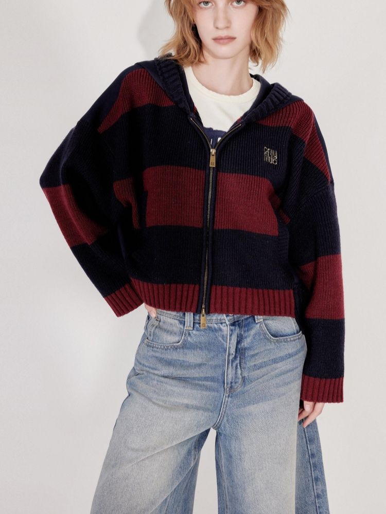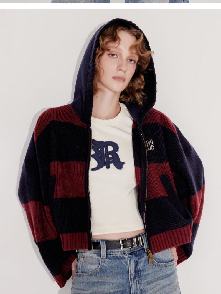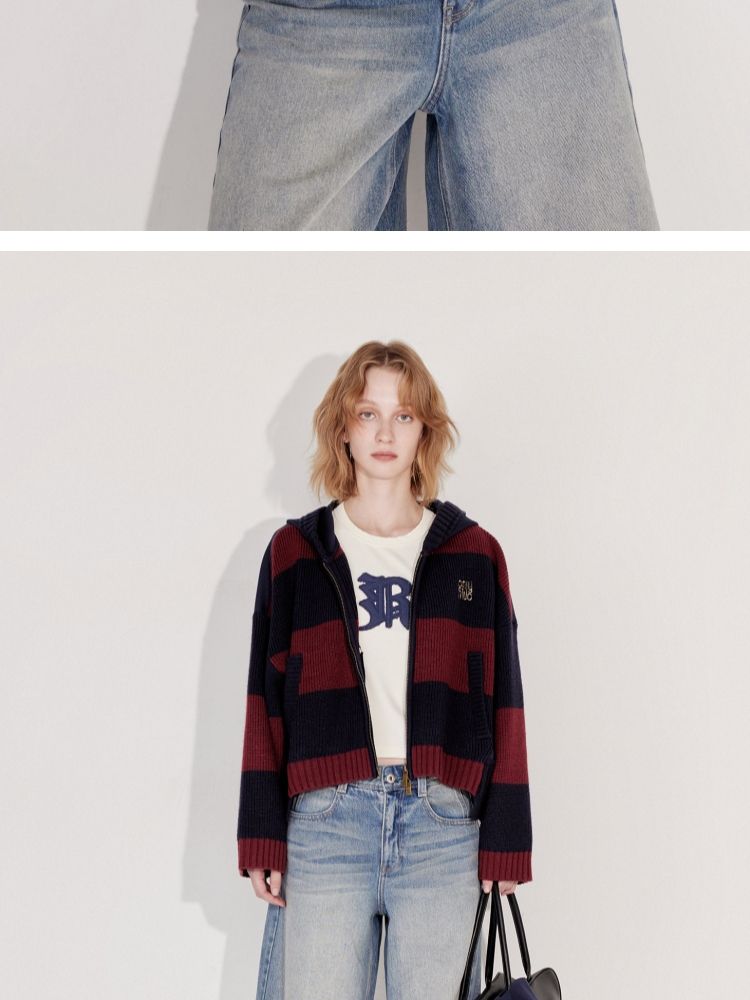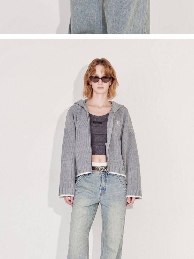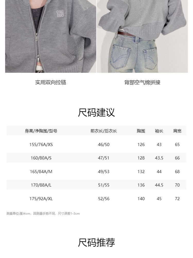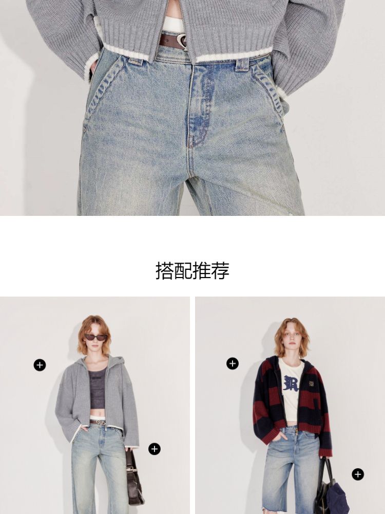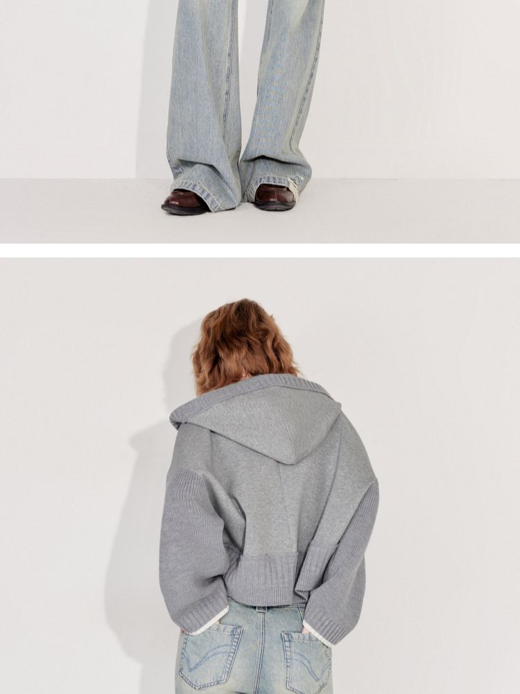 商品名称:【双向拉链】2025春季时尚慵懒风拼接连帽开衫针织衫女 600026