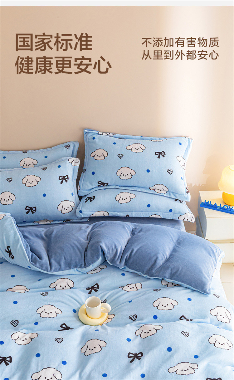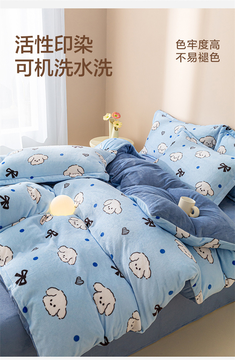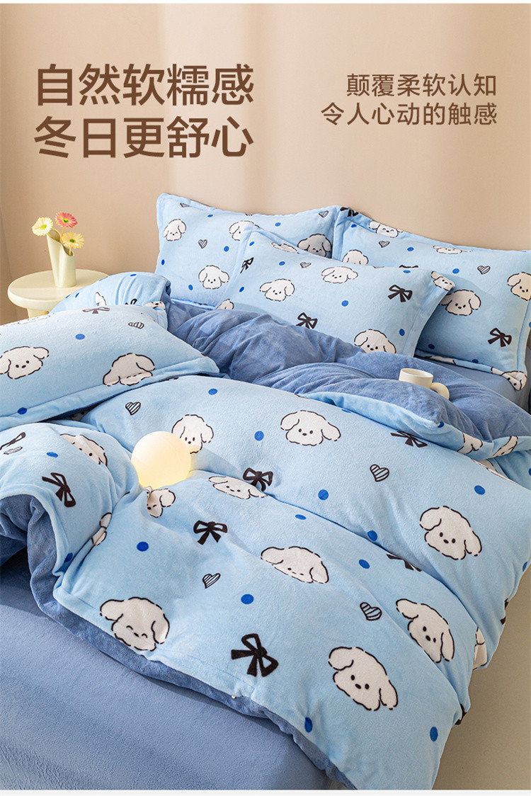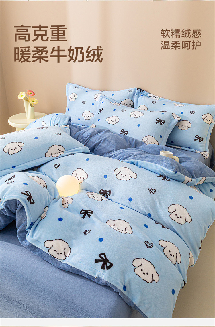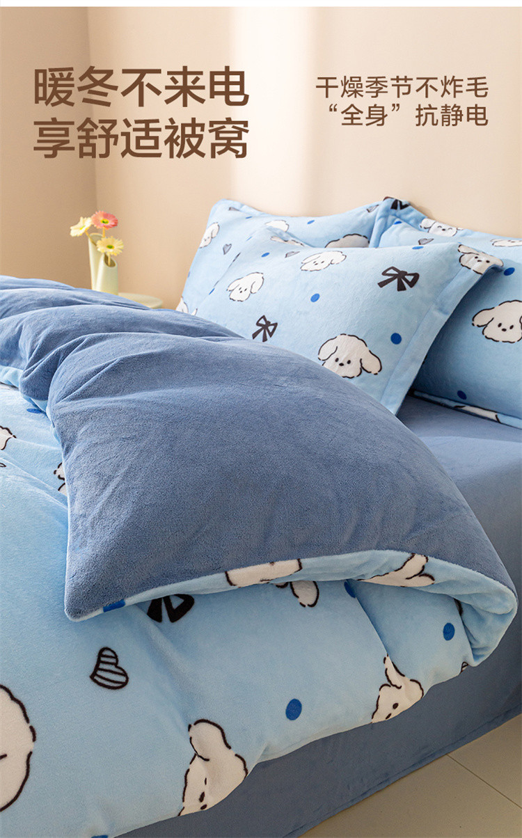秋冬A类加厚牛奶绒四件套抗静电家庭宿舍套件被套床单三件套 140291