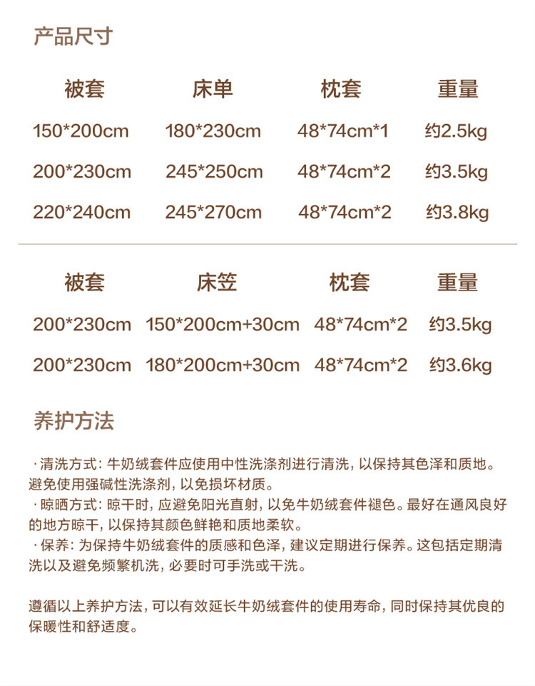 1.2m床小号三件套:被套150*200cm,床单180*230cm,枕套48*74cm*1
