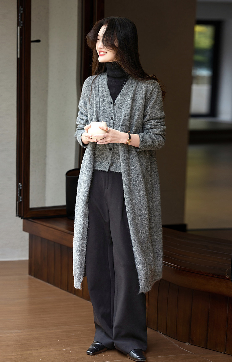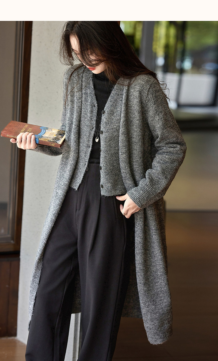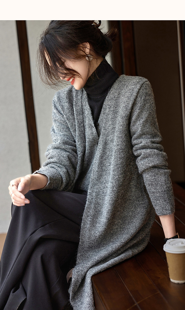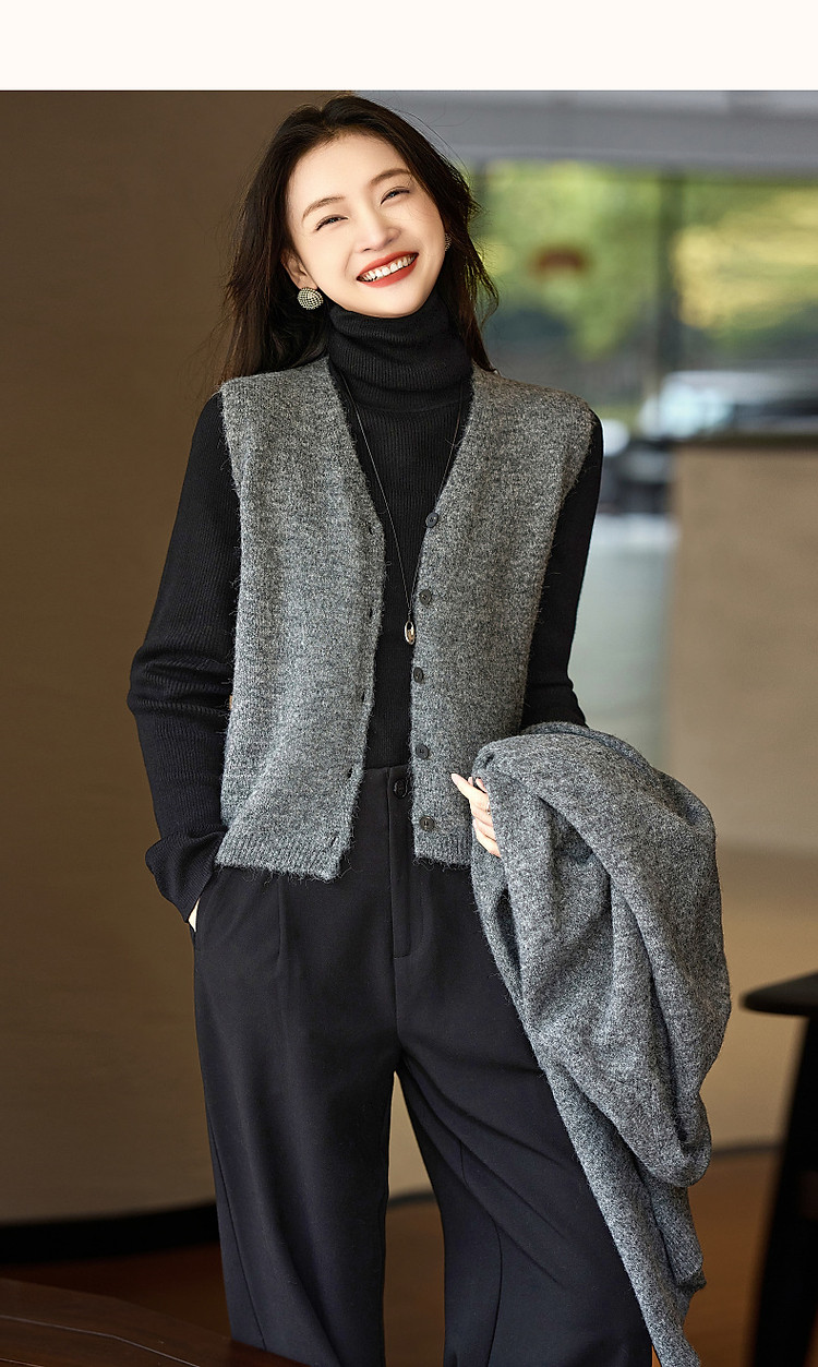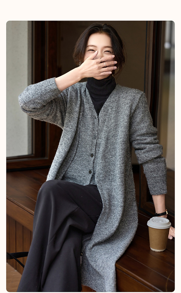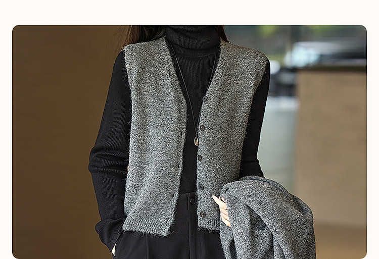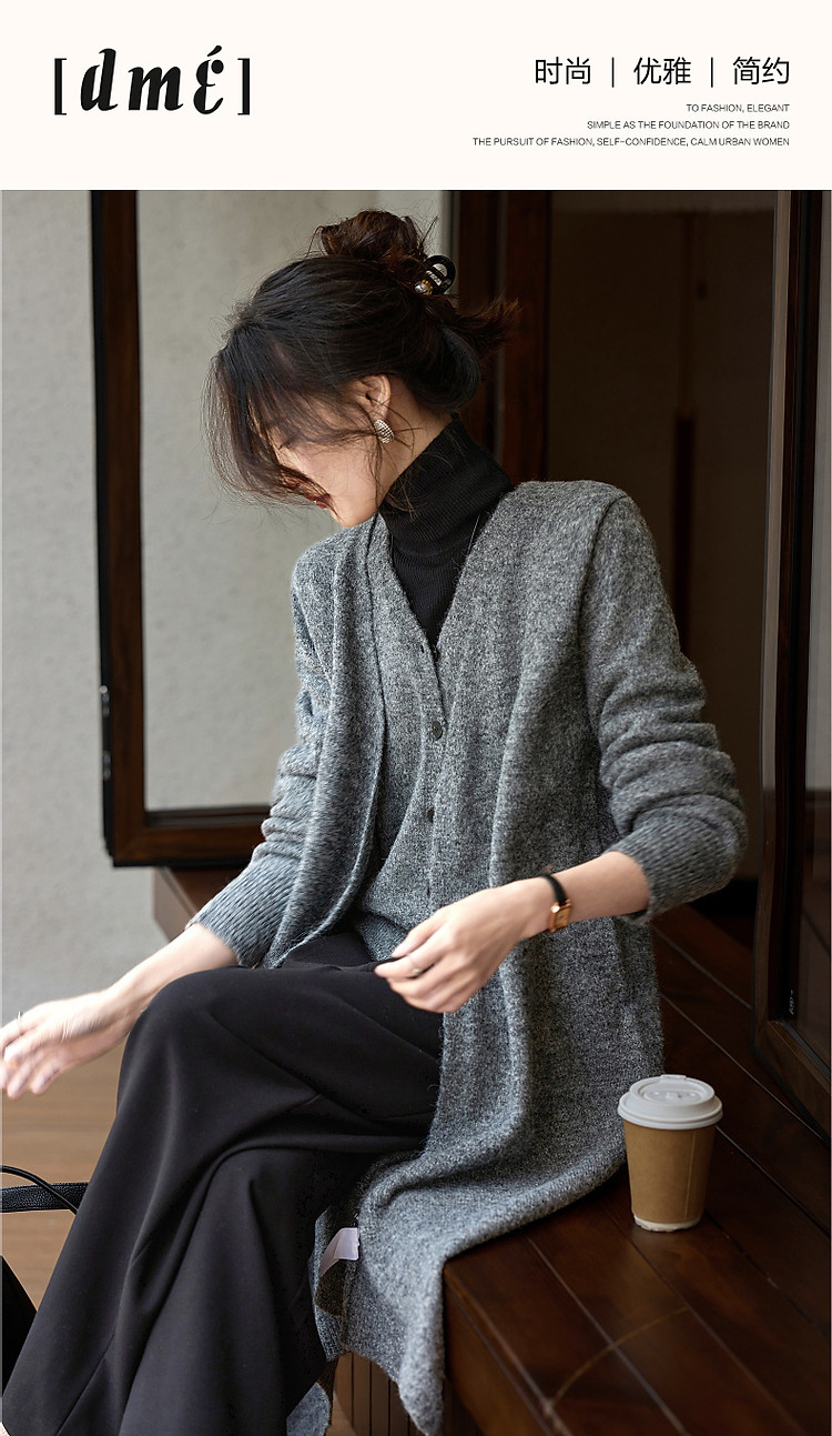 商品名称:【高智感老钱】秋季V领线衫舒适遮肉上衣好搭针织衫套装两件套 584129