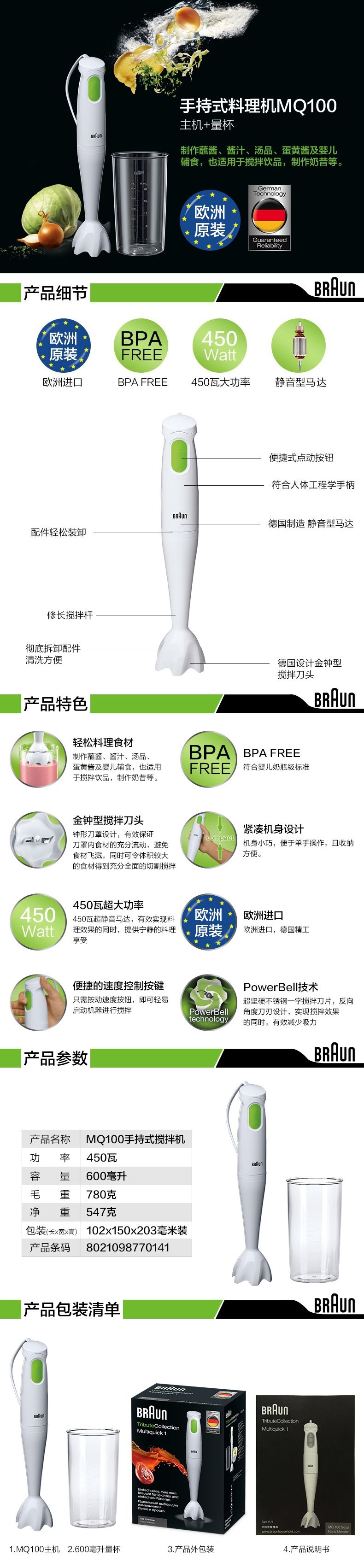 商品名称:博朗 多功能料理棒 手持式料理机 MQ100