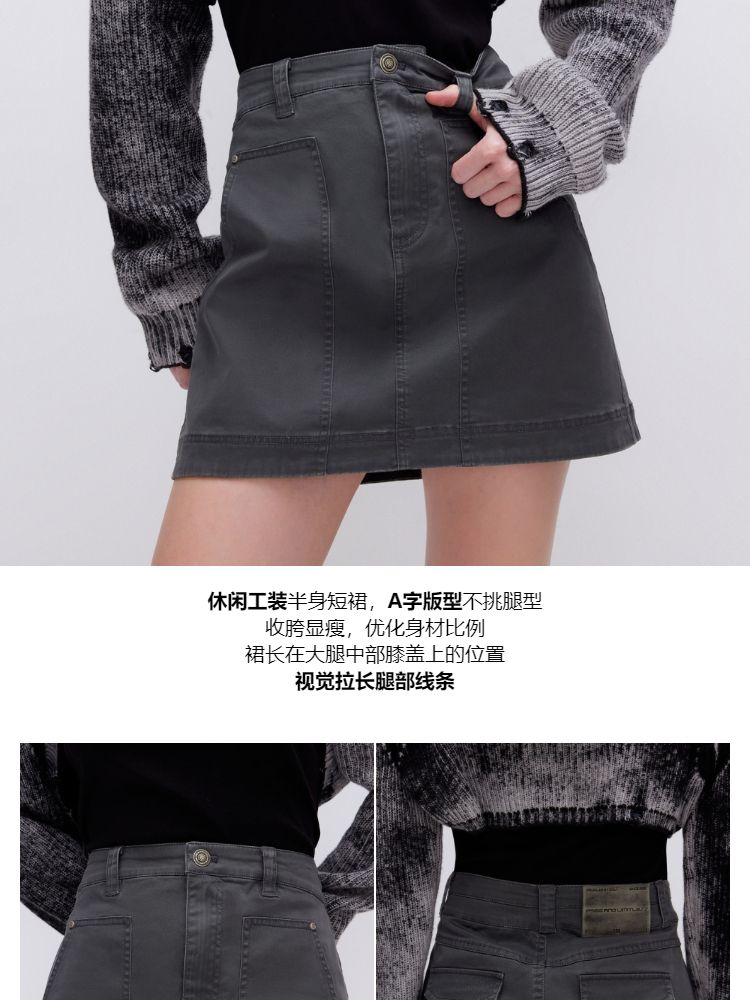 【高腰工装短裙】2025夏季时尚酷感纯色A字半身裙女 778714