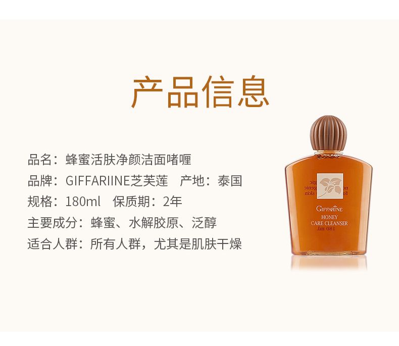 商品名称:芝芙莲 蜂蜜活肤净颜洁面啫喱180ml