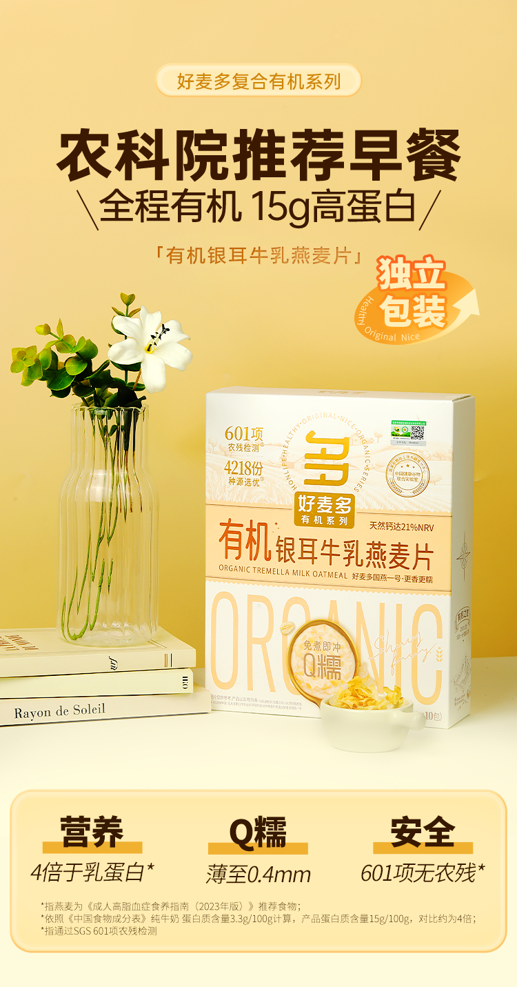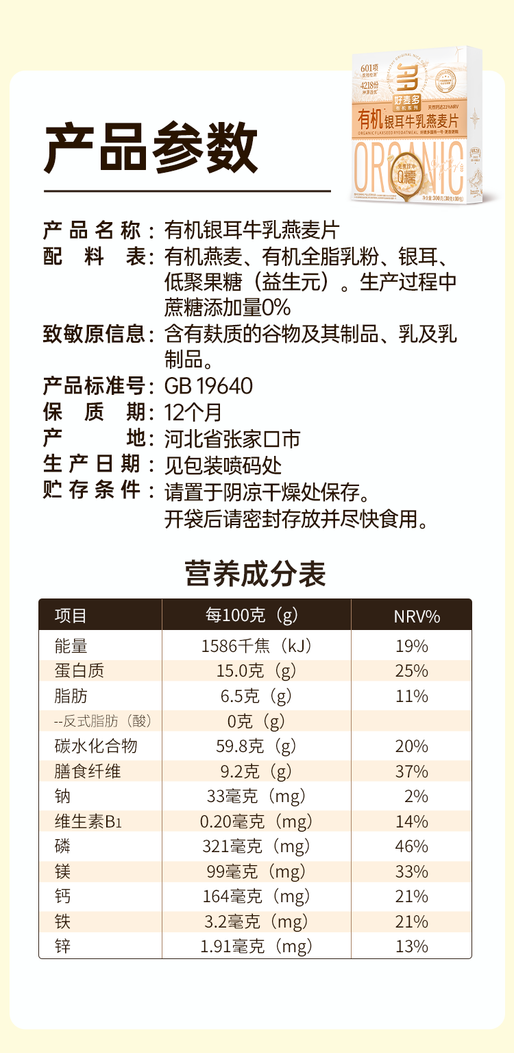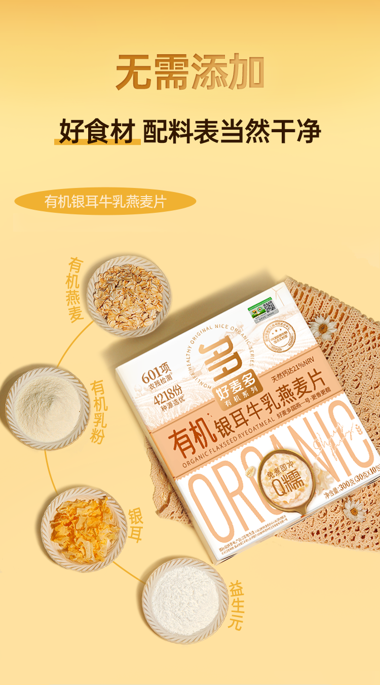 商品名称:好麦多有机银耳牛乳燕麦片300g