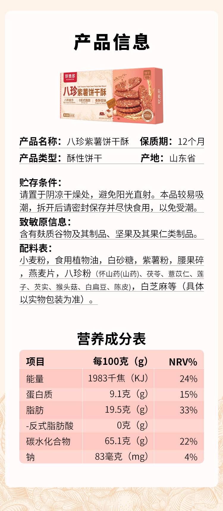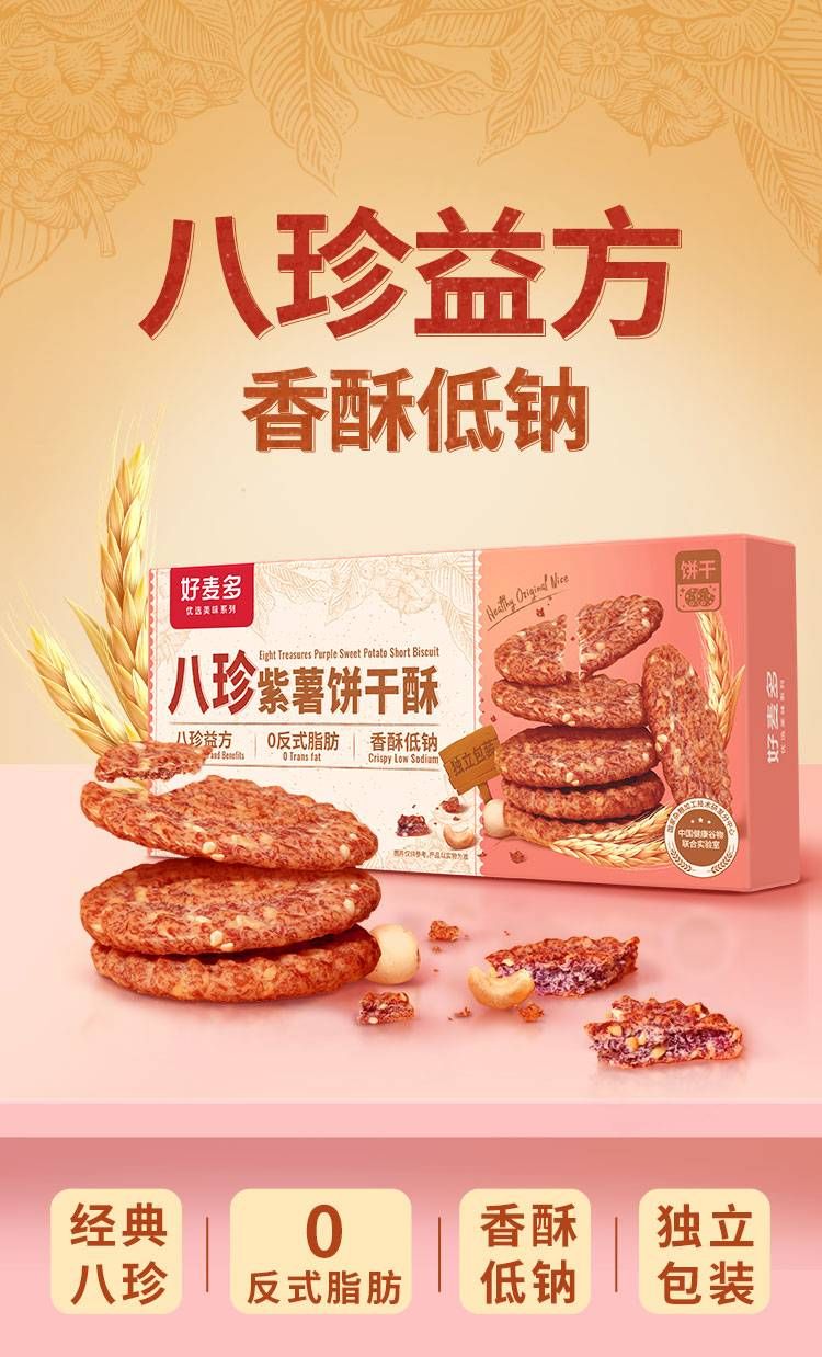 商品名称:好麦多 八珍紫薯饼干酥110g*3盒