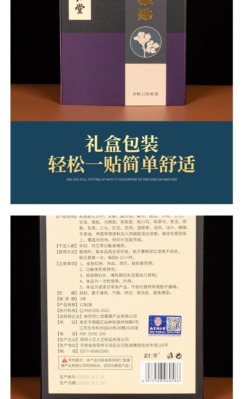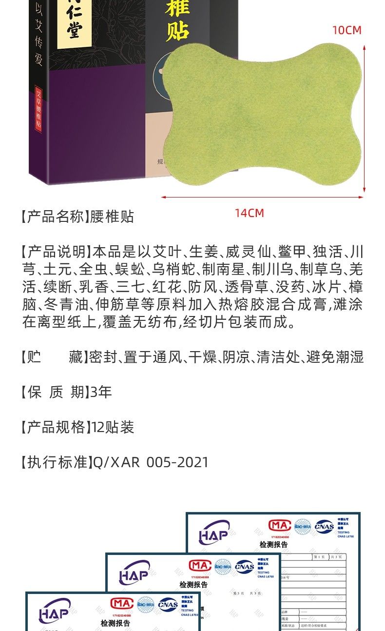 商品名称:南京同仁堂 草本腰椎贴 12贴/盒