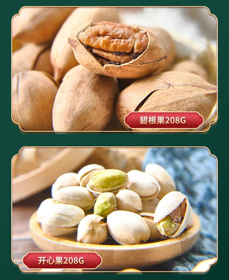 佰食优 万事如意年货坚果礼盒(夏威夷果200g*1/巴旦木208g*1/碧根果208g*1/开心果208g*1/山核桃瓜