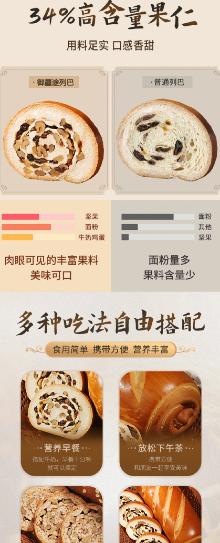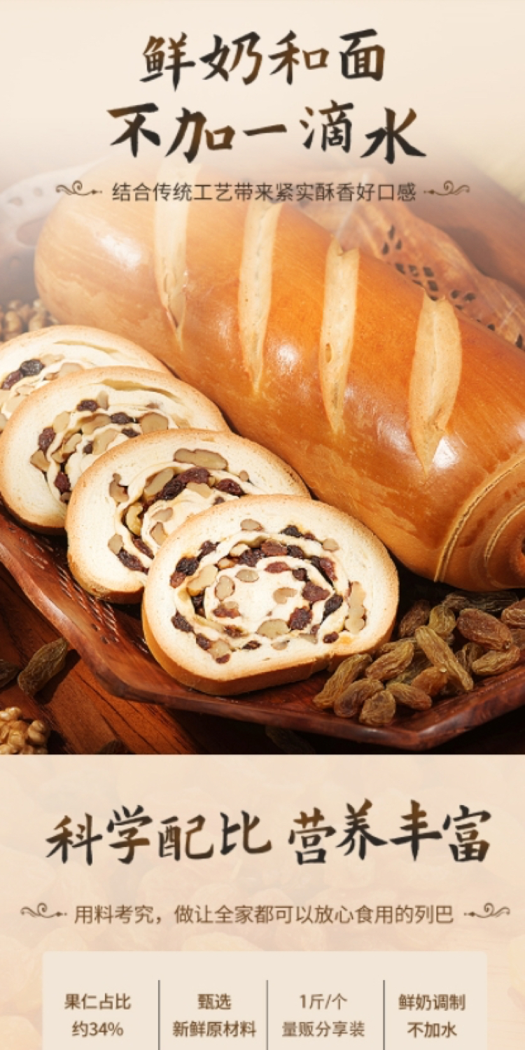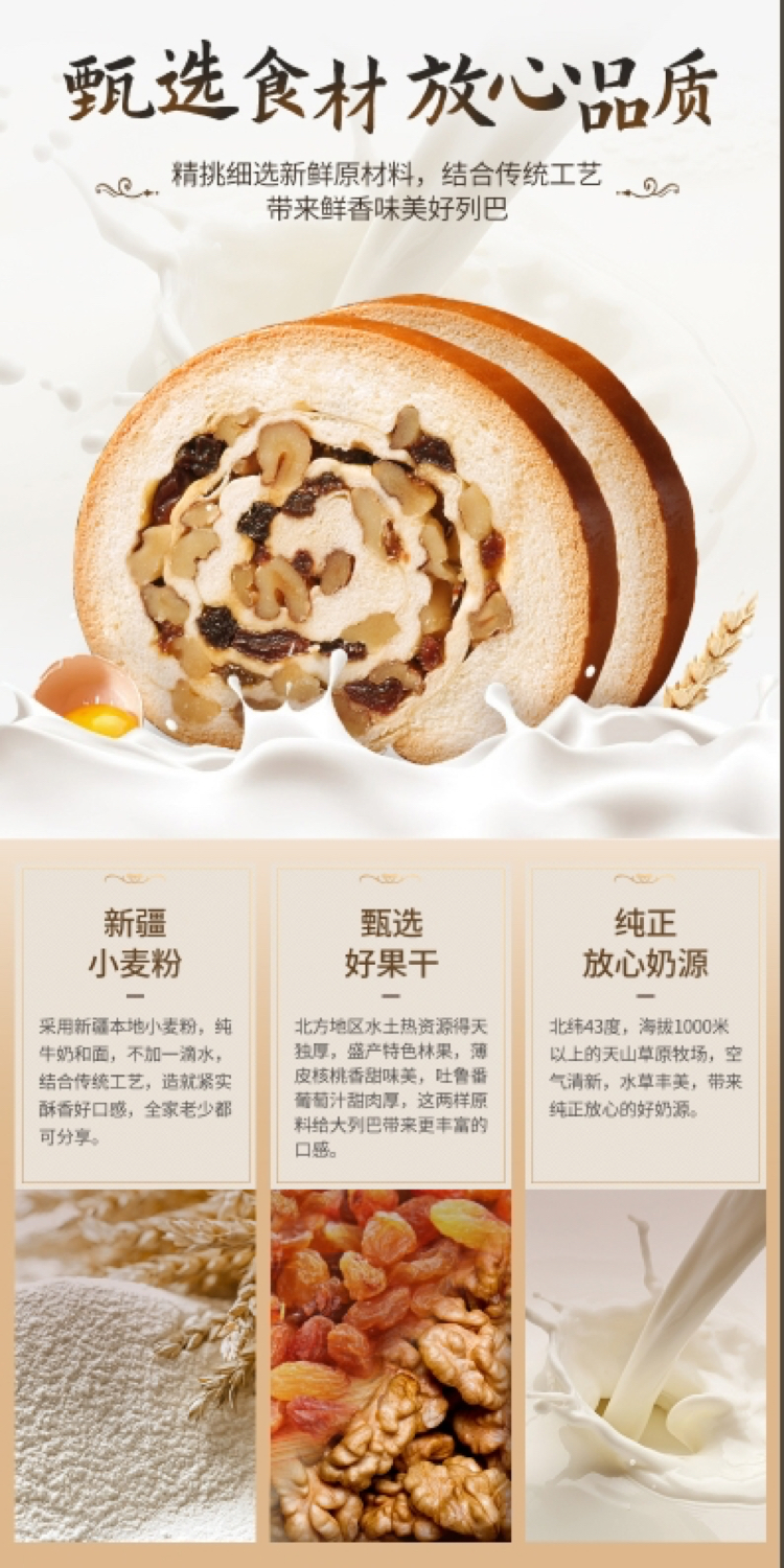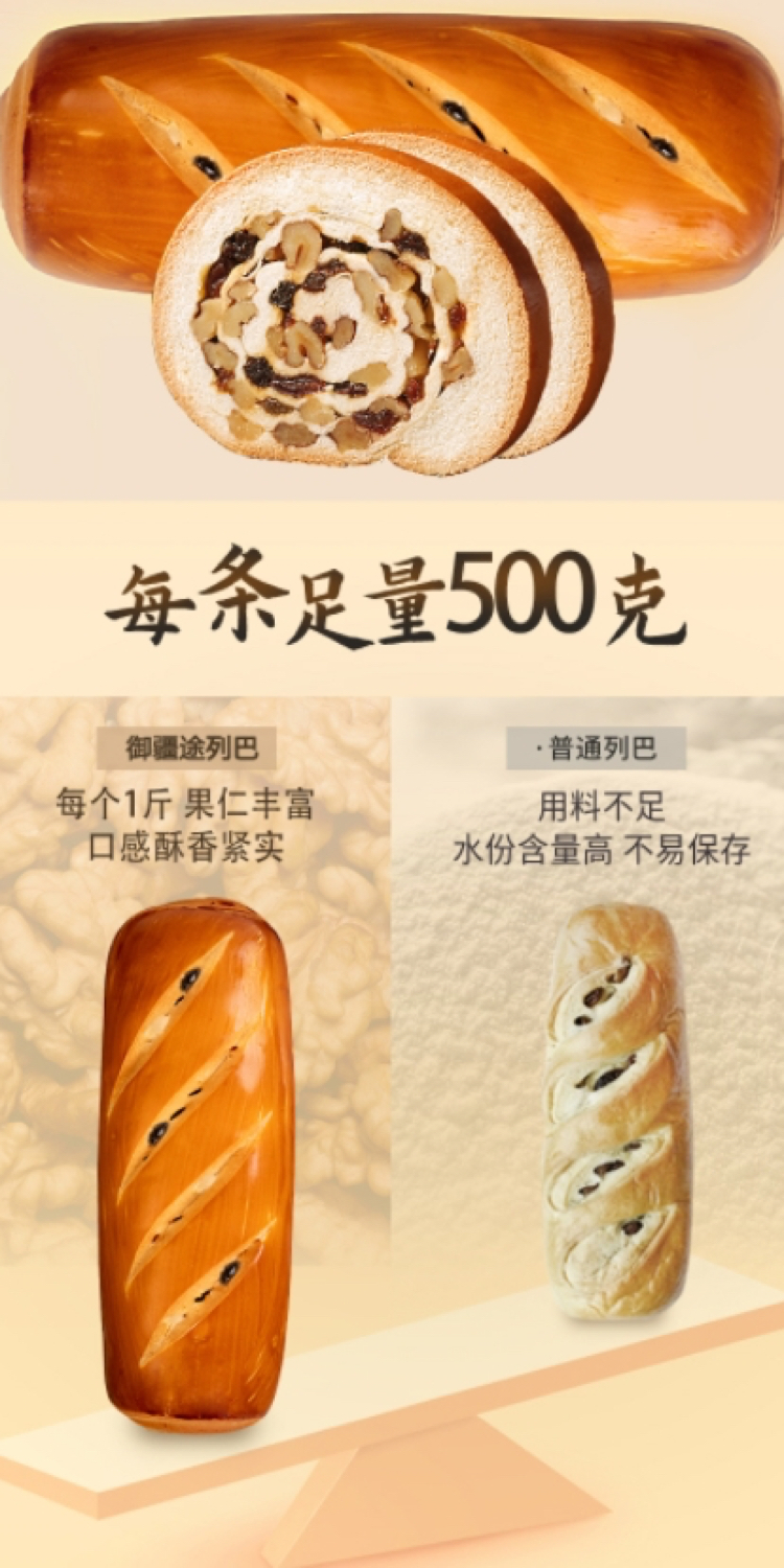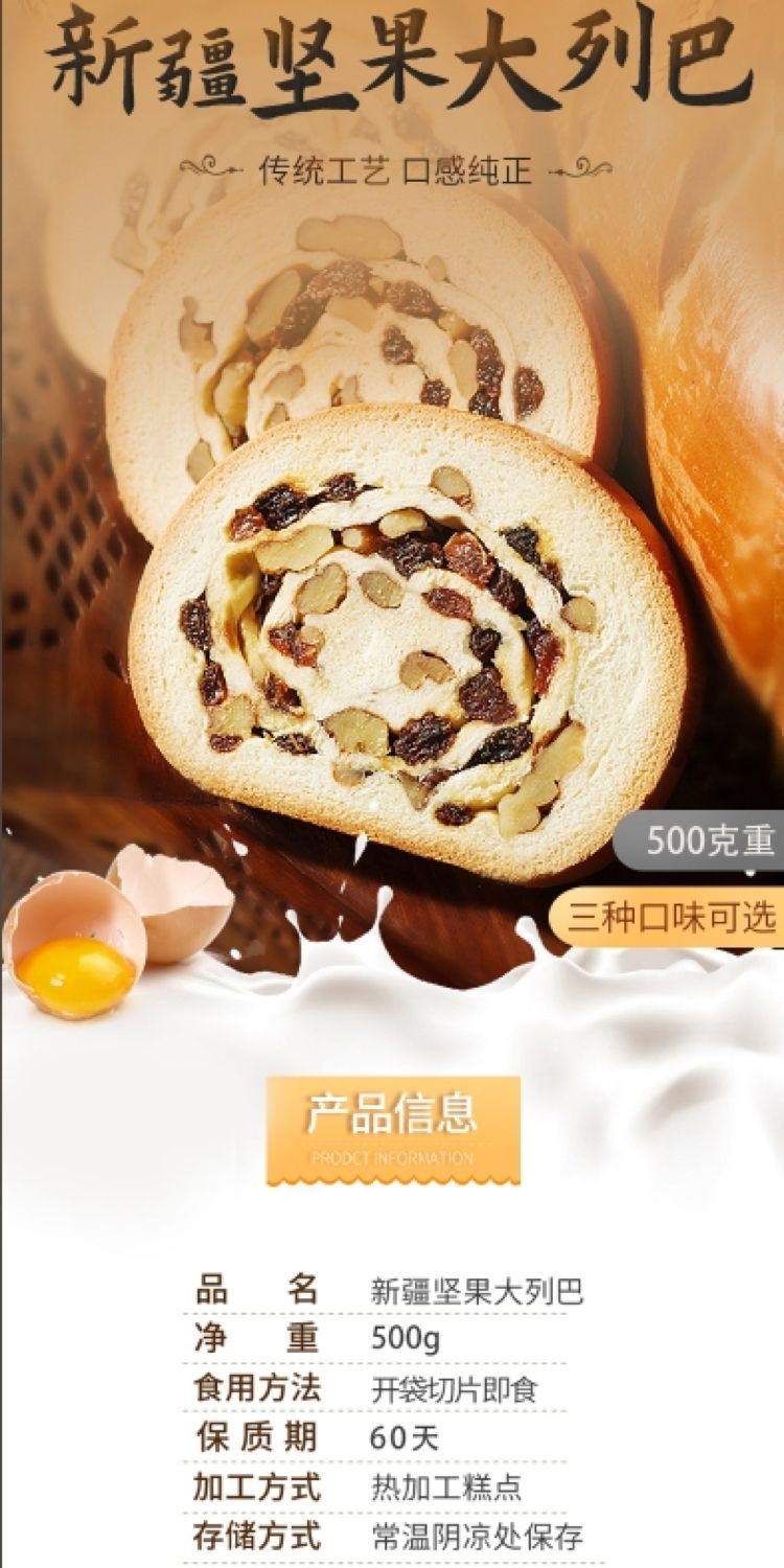 商品名称:御疆途 新疆大列巴(2000g)(坚果列巴500g1根x2+黑加仑蔓越莓列巴500g1根x2)