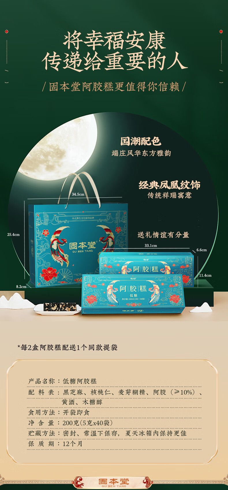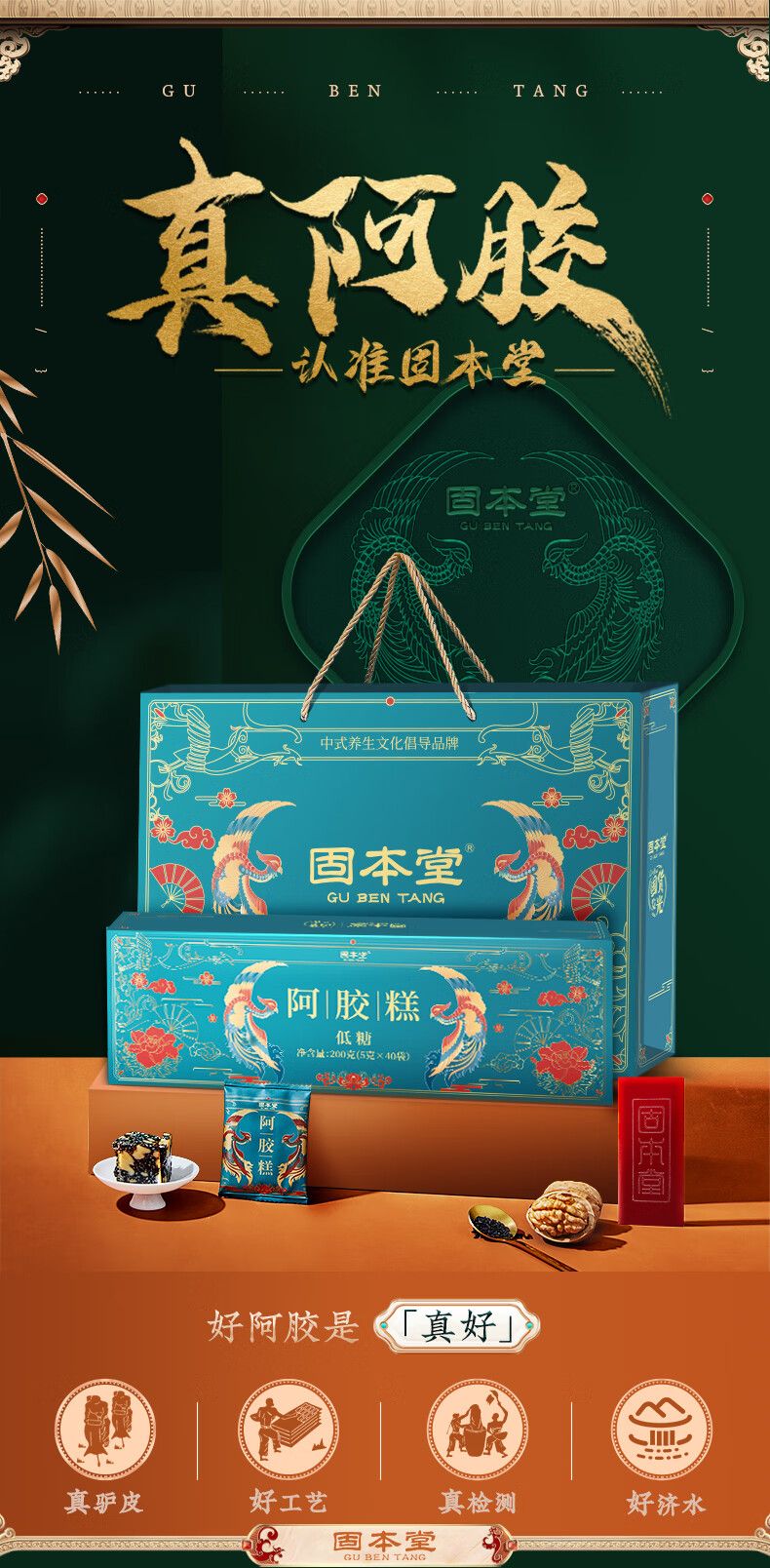 商品名称:固本堂 低糖阿胶糕 200g*2盒