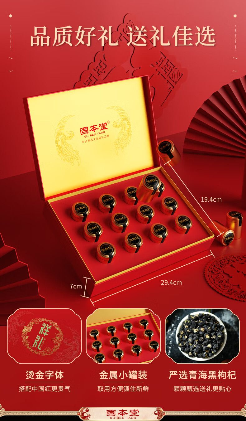 商品名称:固本堂 黑枸杞礼盒 180克