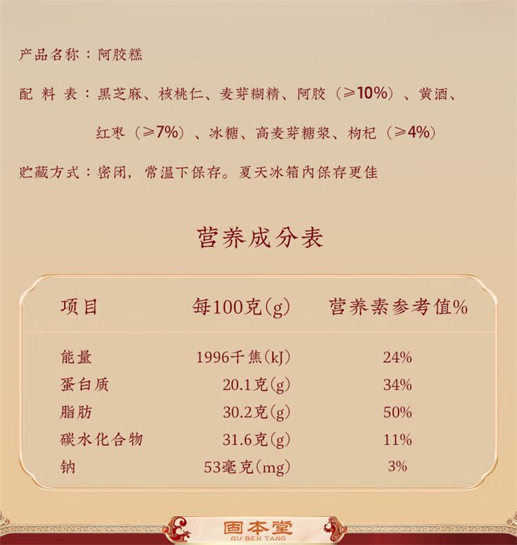 商品名称:固本堂 红枣枸杞阿胶糕礼盒 500g