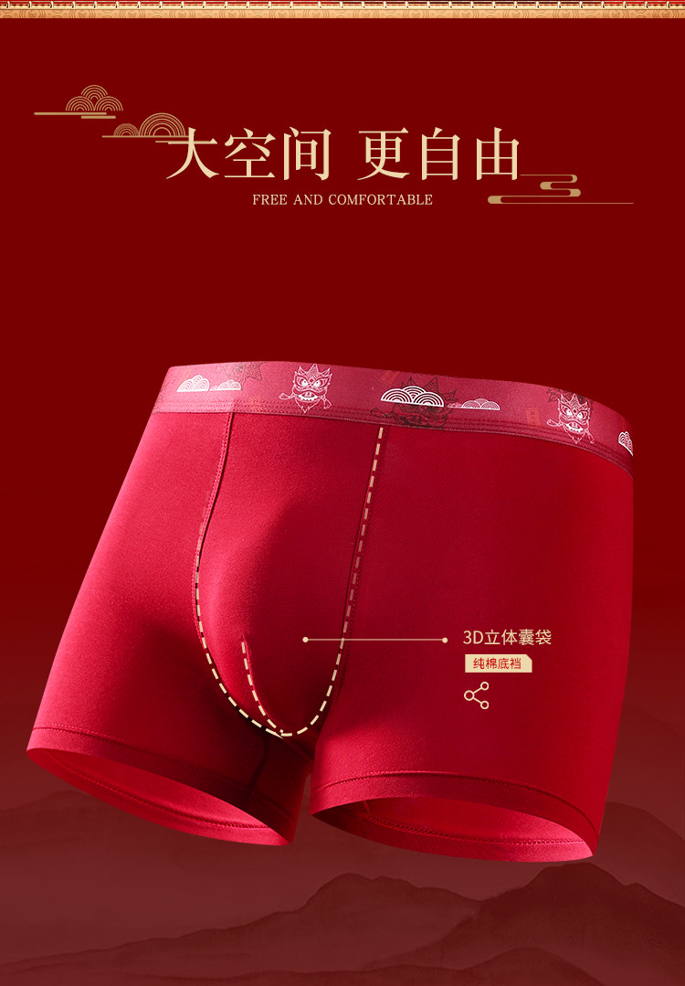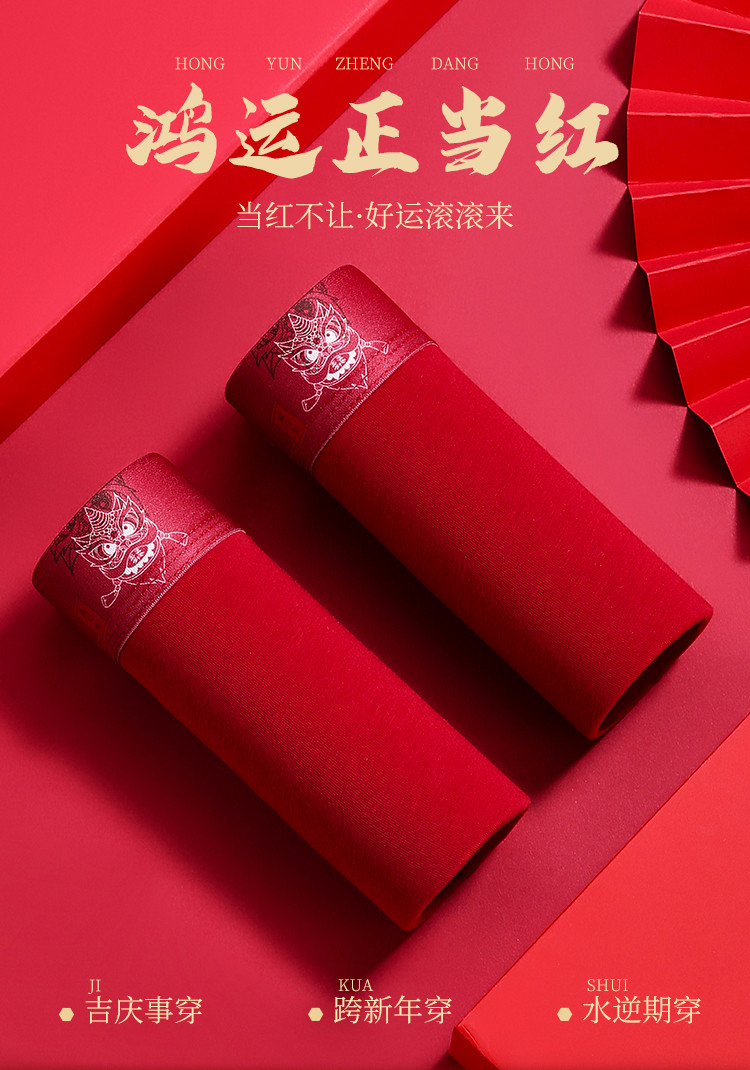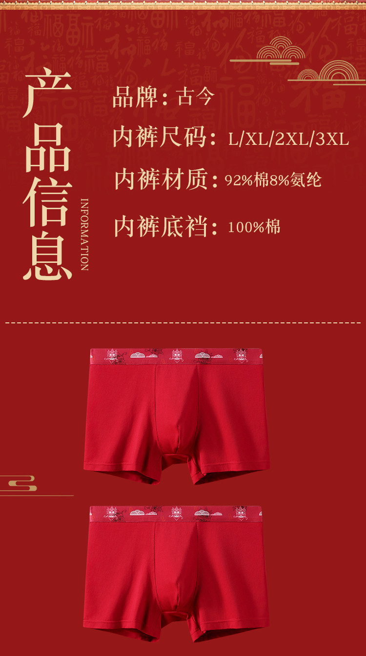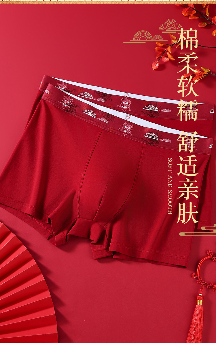 商品名称:【纯棉抑菌裆】2条装本命男士内裤男红色平角短裤衩鸿运顺利上岸 127115