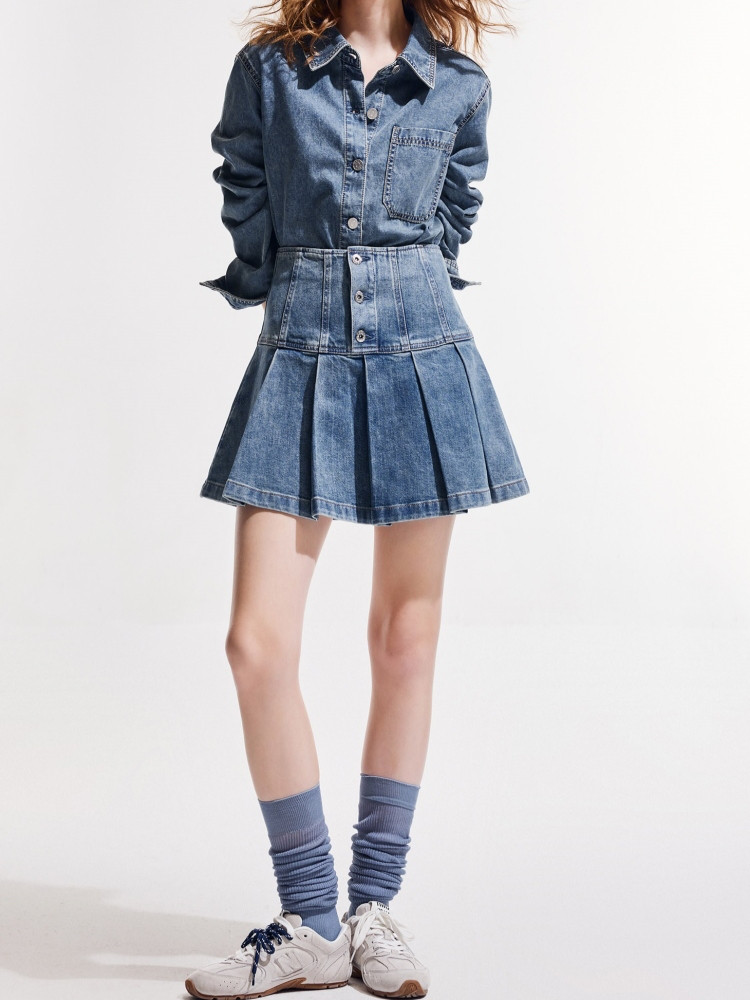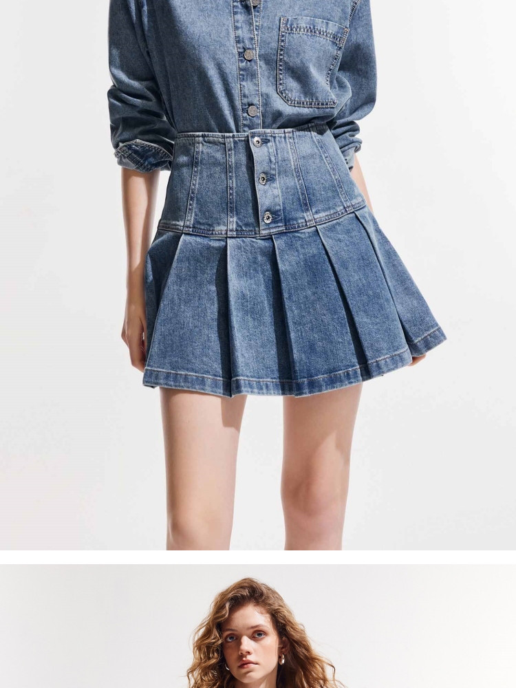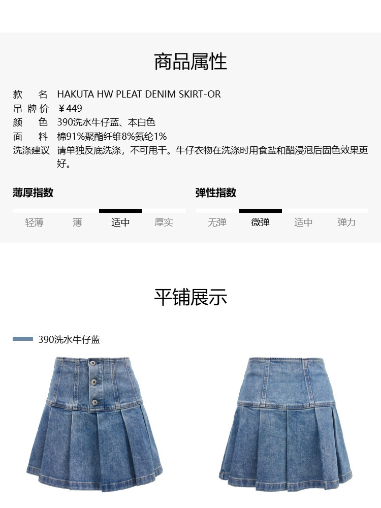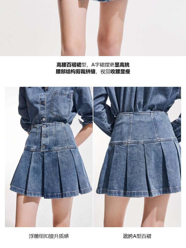 商品名称:【百褶短裙】25夏季时尚甜美学院高腰宽腰头百褶裙牛仔半身裙女 347162