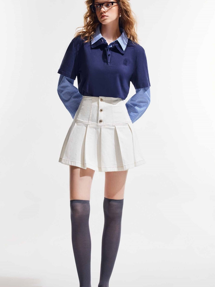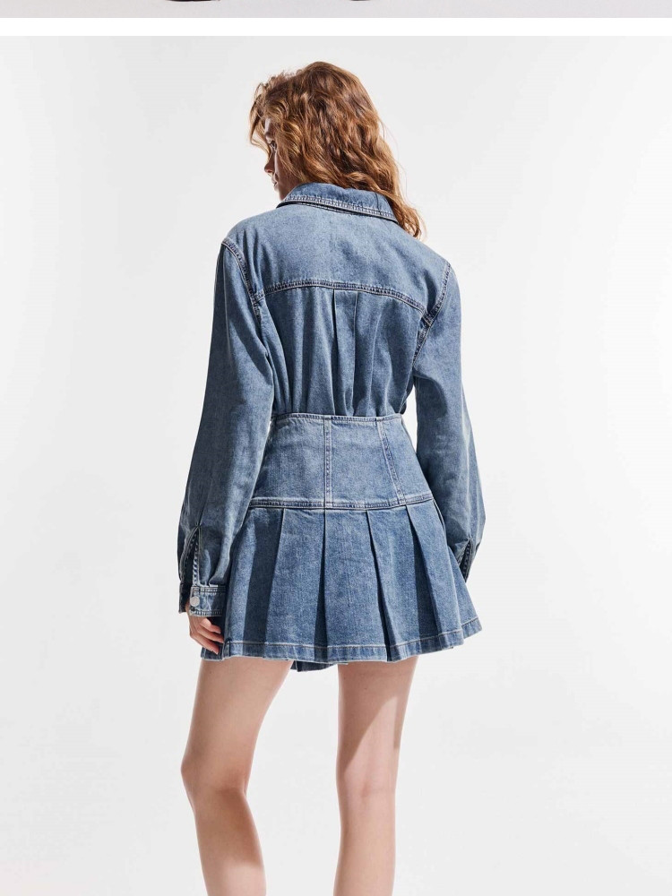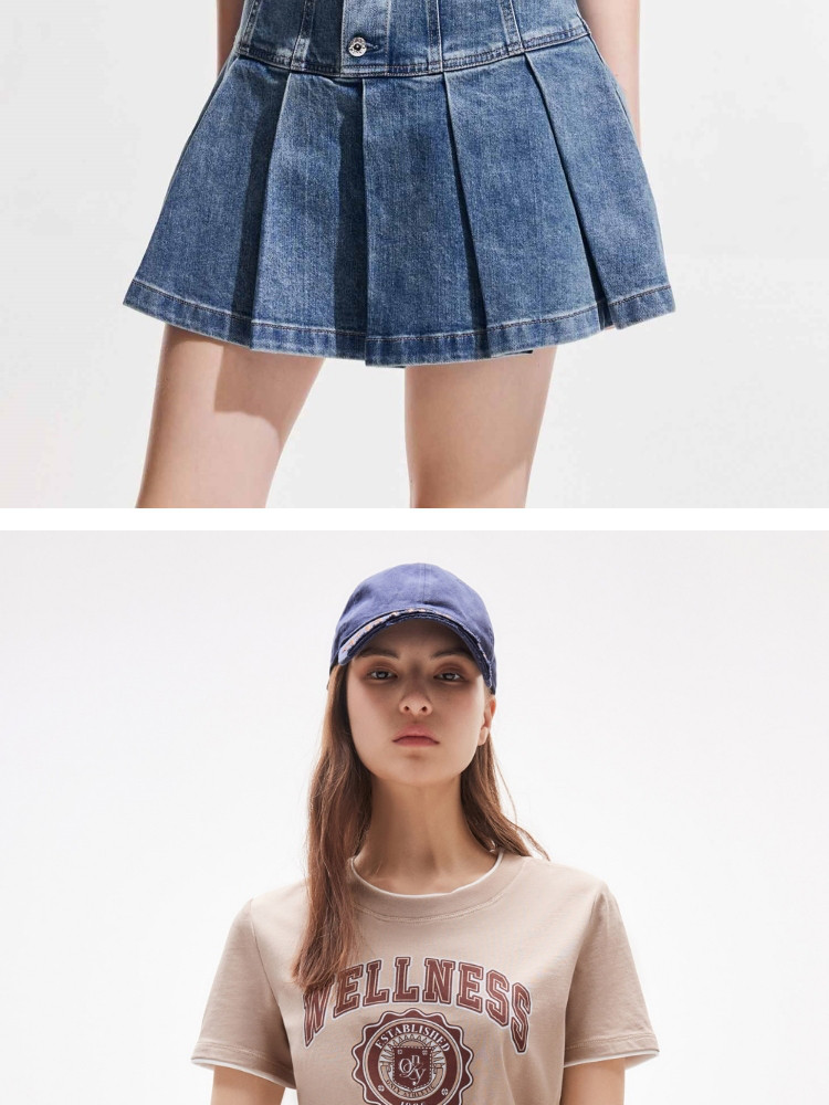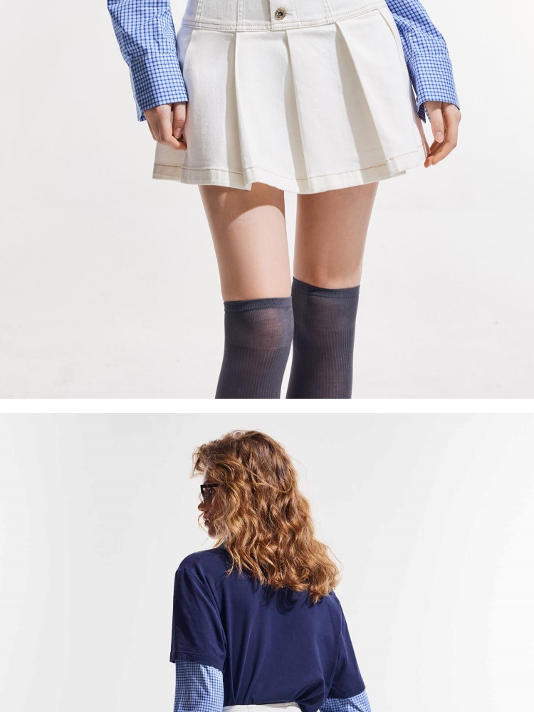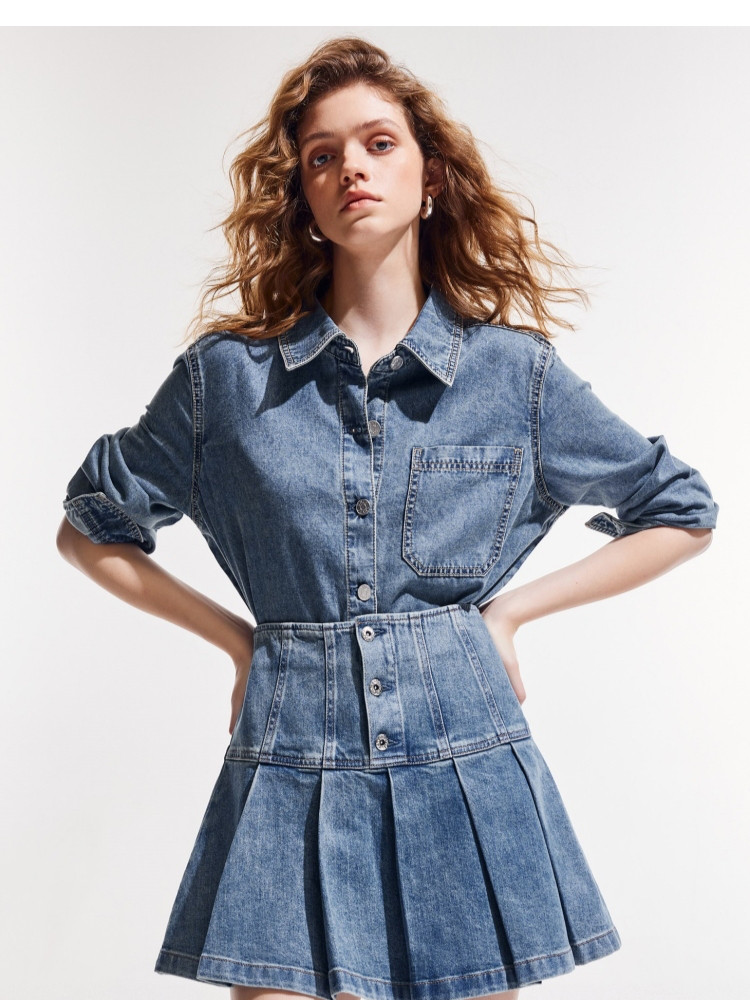 商品名称:【百褶短裙】25夏季时尚甜美学院高腰宽腰头百褶裙牛仔半身裙女 347162