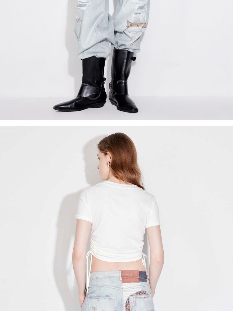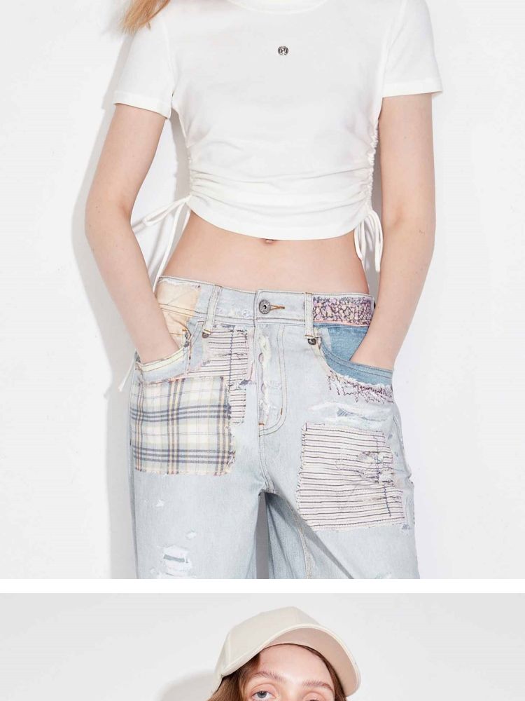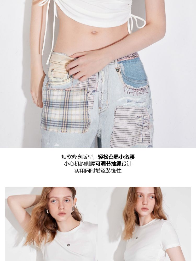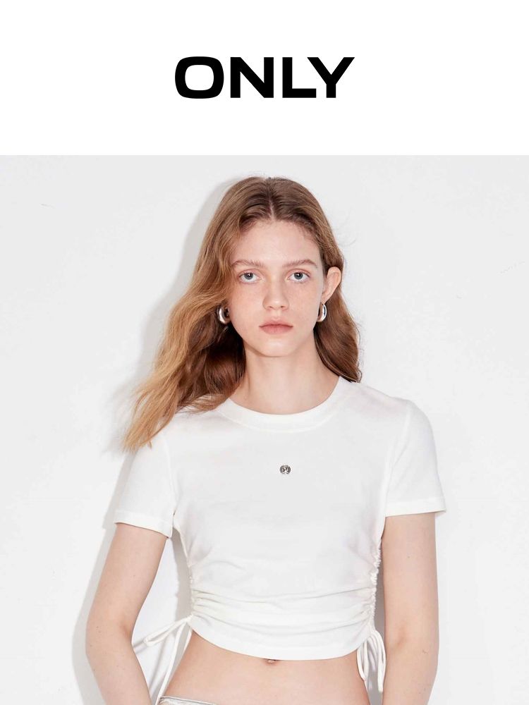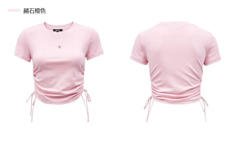 商品名称:【可调节侧腰抽绳】2025夏季百搭修身短款正肩纯色圆领T恤女 511002
