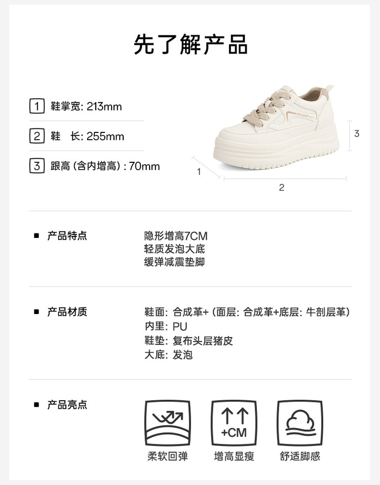 商品名称:女鞋板鞋女休闲鞋内增高女鞋小白鞋女款经典简约百搭厚底鞋 560655