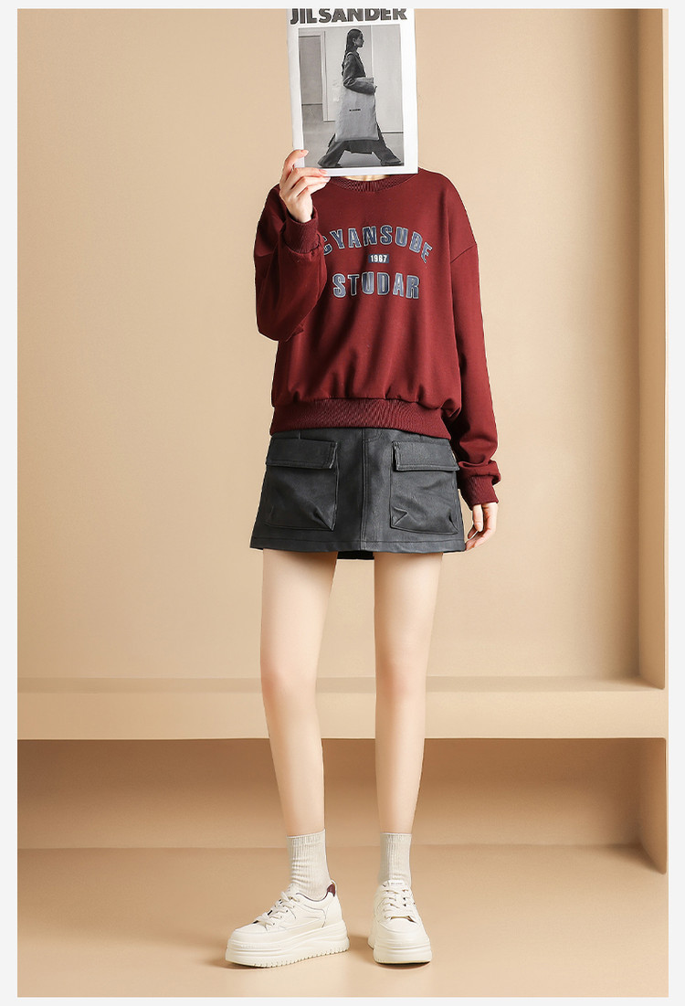米子旗春秋款圆领女士卫衣外套宽松短款慵懒风卫衣女 272346