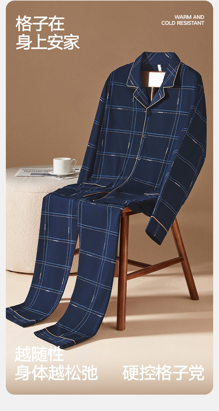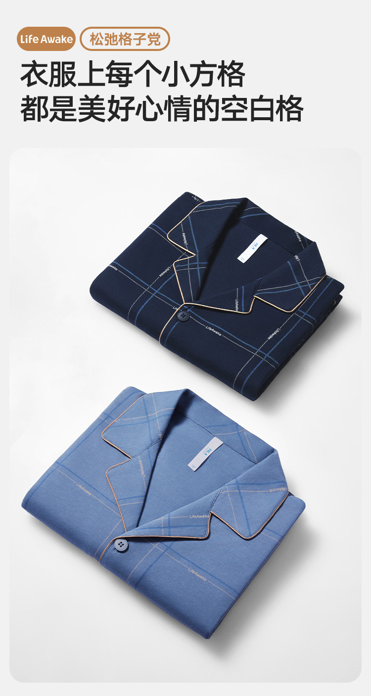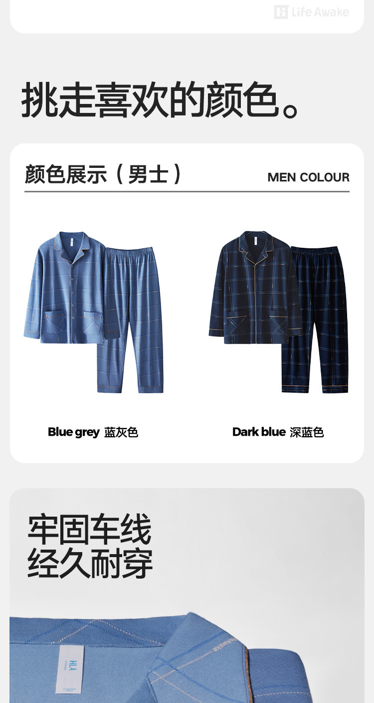 商品名称:【100%纯棉】男士睡衣套装休闲家居服透气长袖长裤可外穿男款 161562