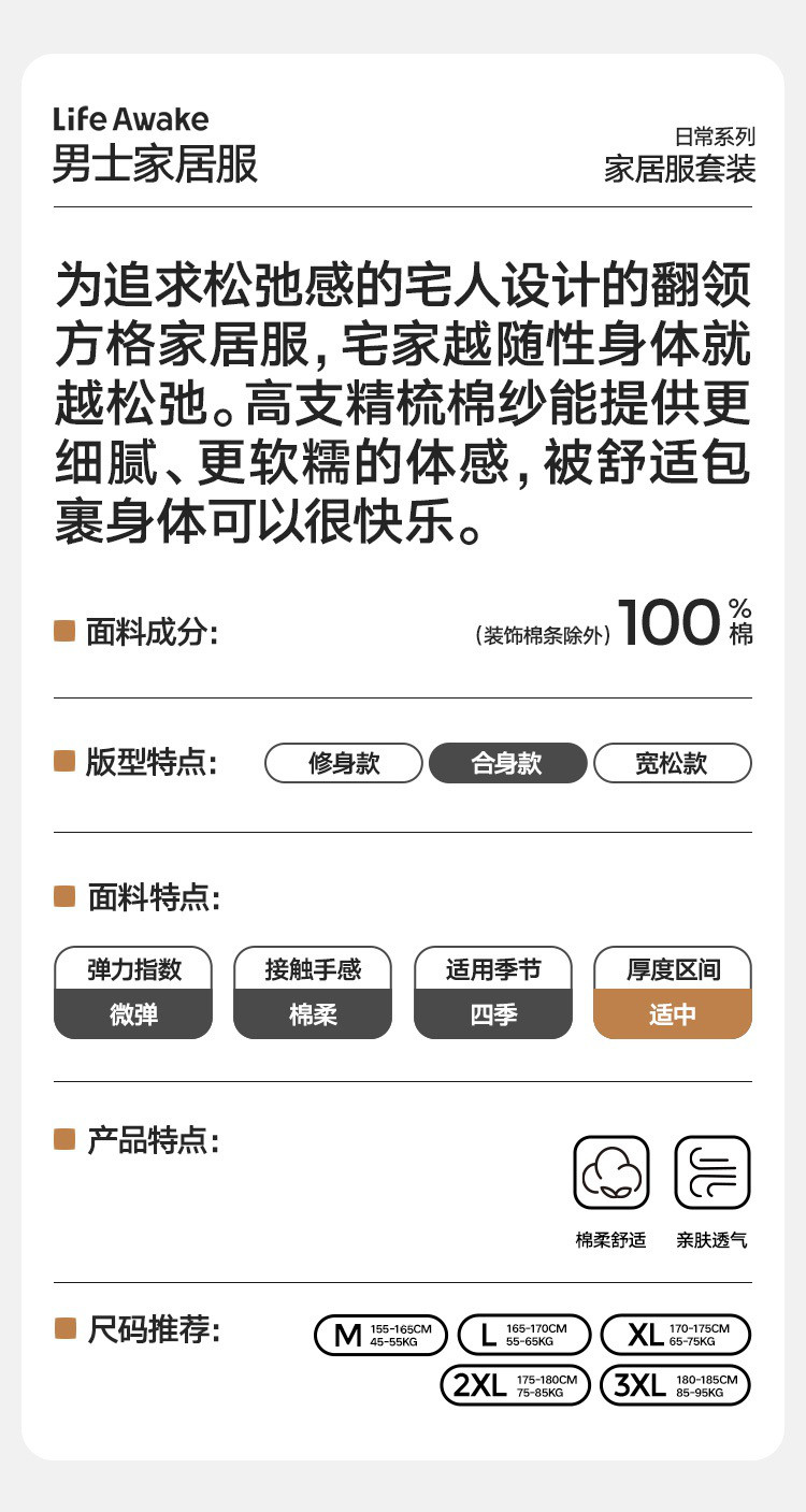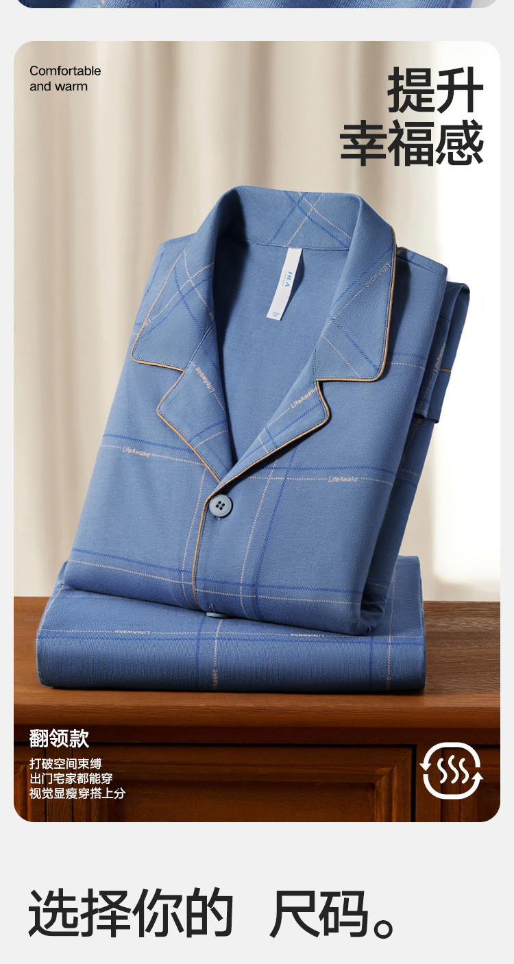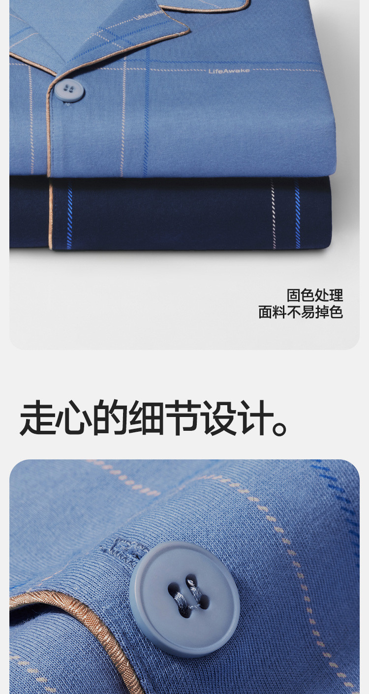 商品名称:【100%纯棉】男士睡衣套装休闲家居服透气长袖长裤可外穿男款 161562