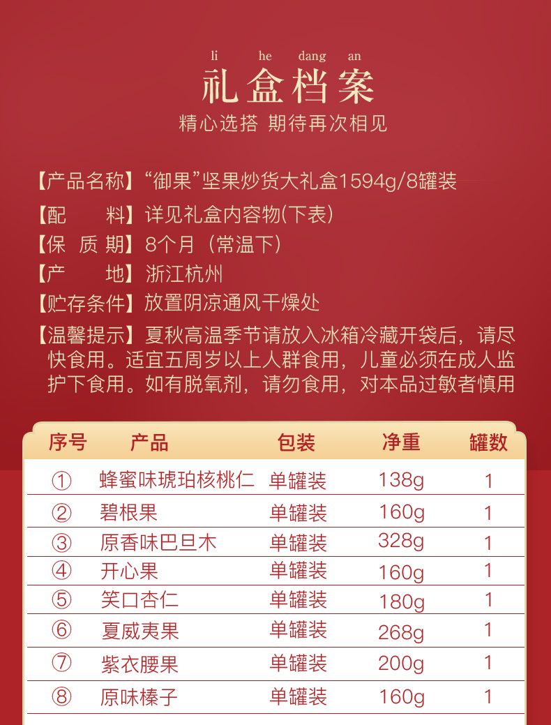 商品名称:姚生记御果礼盒1.594千克/电商坚果礼盒