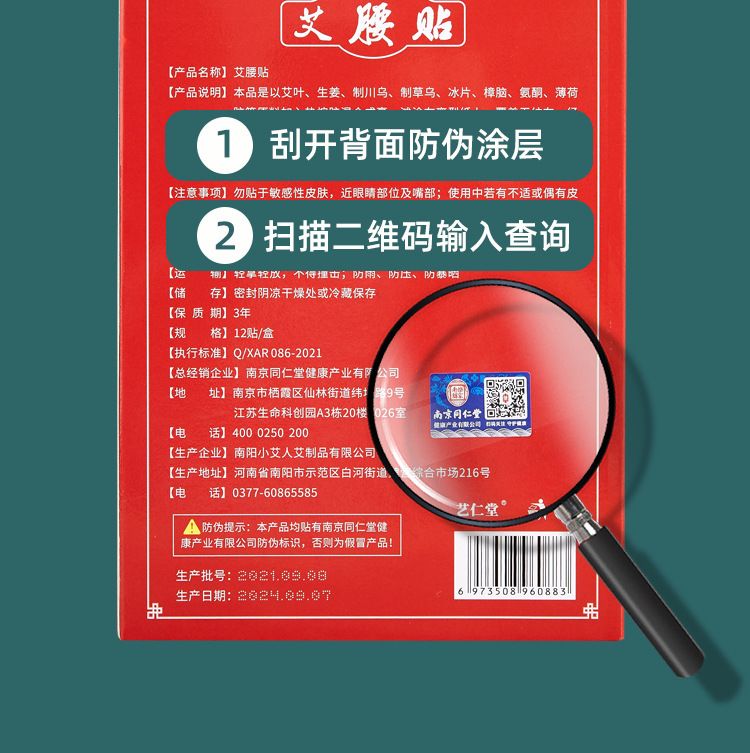 商品名称:南京同仁堂 红盒艾腰贴